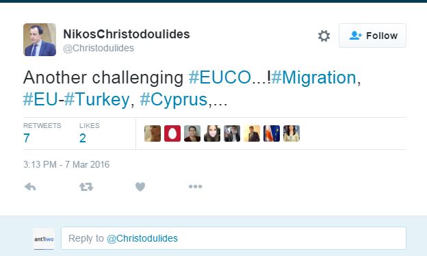 Ο Αχμέτ Νταβούτογλου προσήλθε στο γεύμα εργασίας με τους «28» με νέα τουρκικά αιτήματα της τελευταίας στιγμής σε πολιτικό και οικονομικό επίπεδο -(επιτάχυνση ενταξιακής διαδικασίας, επίσπευση απελευθέρωσης βίζας έως τον Ιούνιο και επιπλέον βοήθεια τριών δισ. ευρώ), προσφέροντας κατά πληροφορίες σε αντάλλαγμα να δεχθεί πίσω η Τουρκία τους μη Σύρους πρόσφυγες, ή ακόμη και Σύρους, και όσους εντοπίζονται σε λέμβους στα χωρικά της ύδατα.