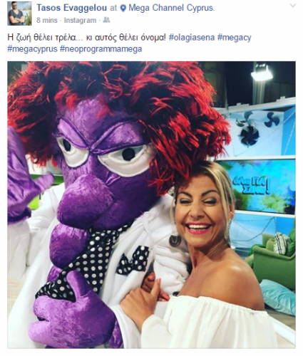 Και όμως το “Ολα για σένα” έχει την δική της μασκότ! Σύμφωνα με αποκλειστικές πληροφορίες του SOCIALISTA.com.cy, αυτο το λιλά πλασματάκι – η λεγόμενη μασκότ της εκπομπής θα βρίσκεται μαζί με την Αλεξία!