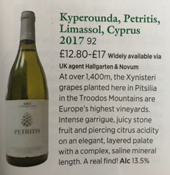 Μια ακόμη σημαντική διεθνή διάκριση απέσπασε το Οινοποιείο Κυπερούντας, καθώς το κορυφαίο οινικό περιοδικό παγκοσμίου φήμης “Decanter”, συγκαταλέγει στο τεύχος Απριλίου το κρασί «Πετρίτης» , ανάμεσα στα 25 πιο εντυπωσιακά κρασιά στο Ηνωμένο Βασίλειο με κόστος κάτω των £25.