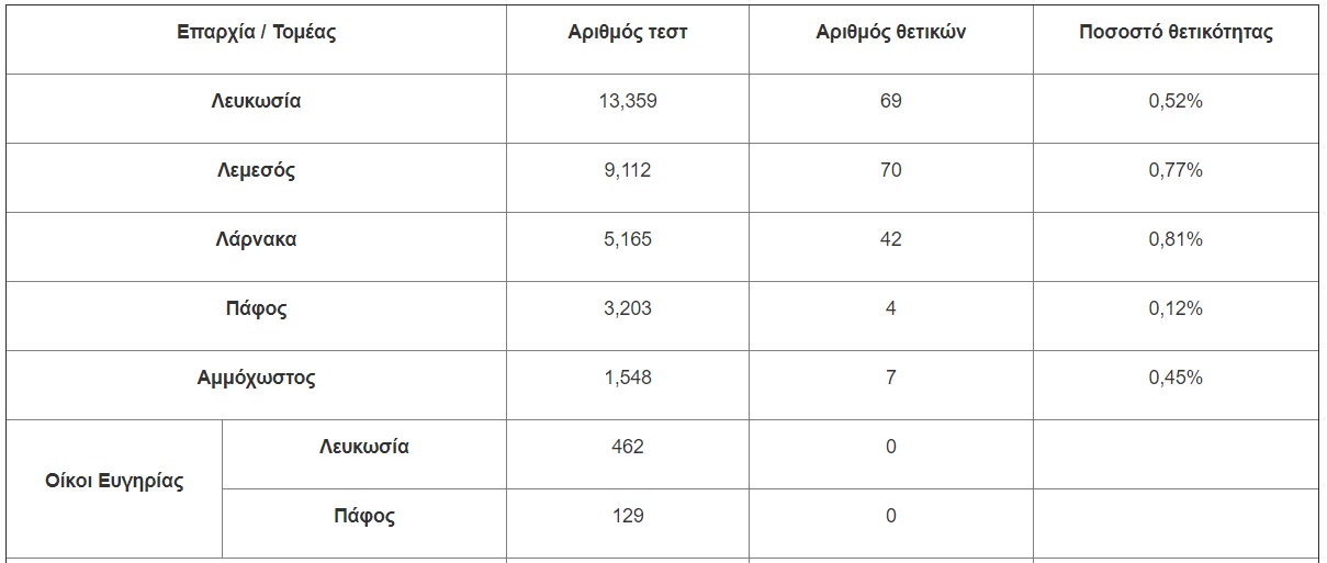 - 1 κρούσμα από 775 δείγματα που λήφθηκαν στο πλαίσιο ελέγχου επιβατών στα Αεροδρόμια Λάρνακας και Πάφου.