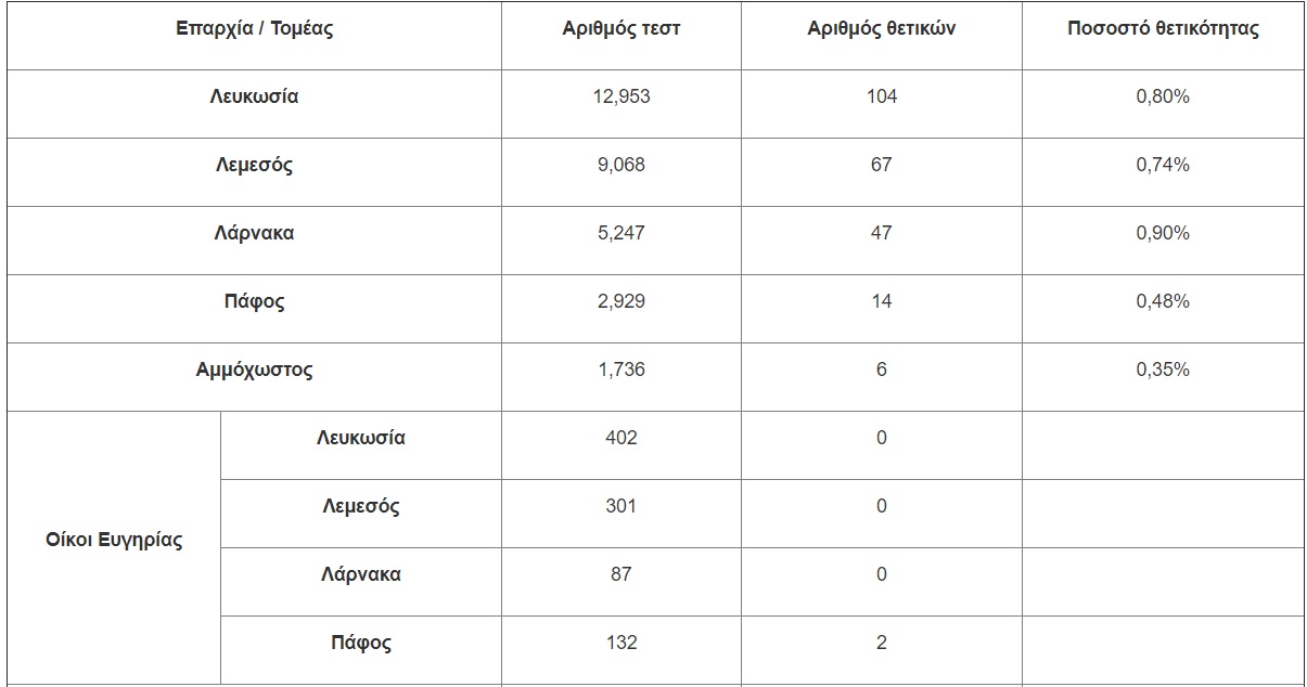 Τα θετικά rapid test σε Λάρνακα και παγκύπρια