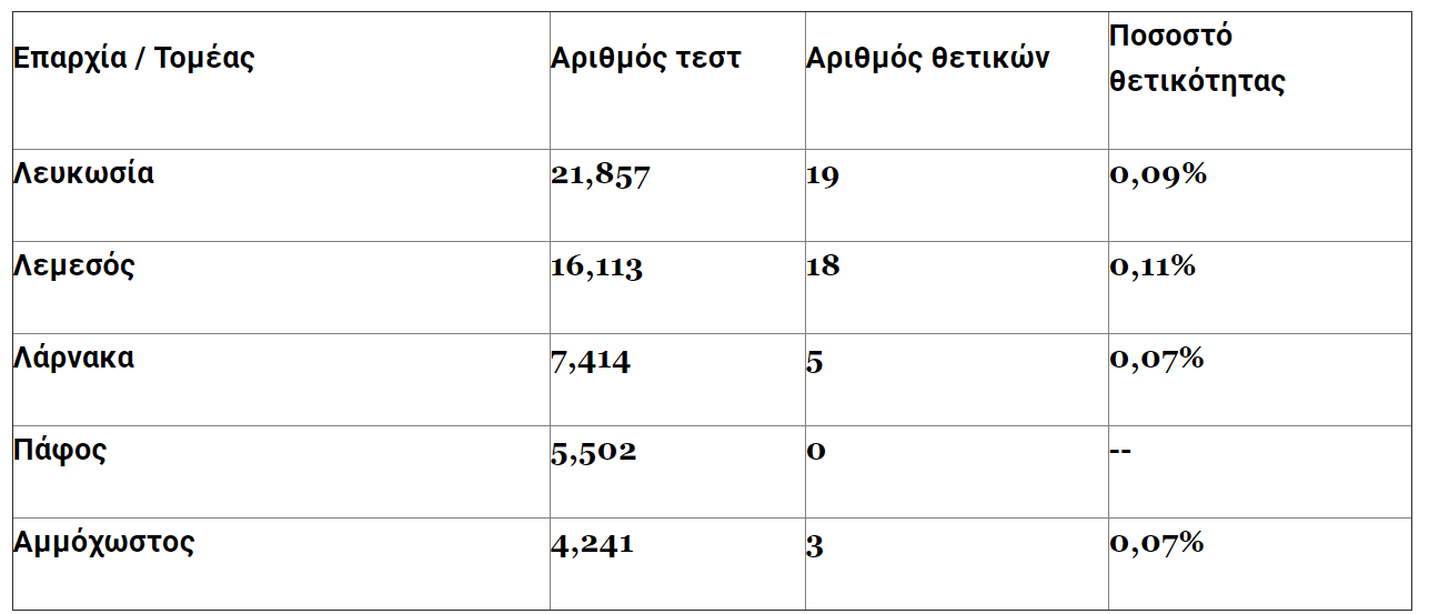 Όπως θα δείτε στον πίνακα, στην Πάφο μετά από 5,502 δεν εντοπίστηκε κανένα κρούσμα.