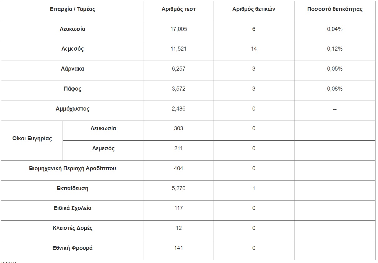 Τα θετικά rapid test σε Λάρνακα και παγκύπρια