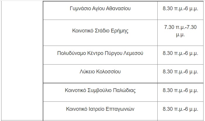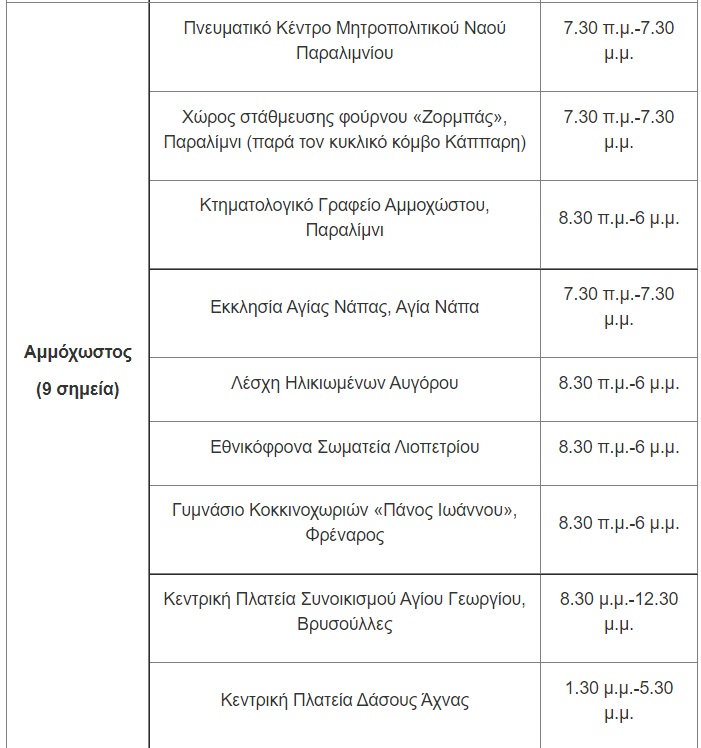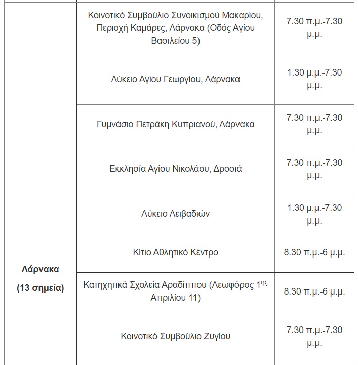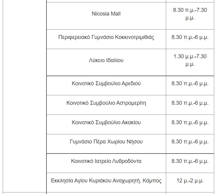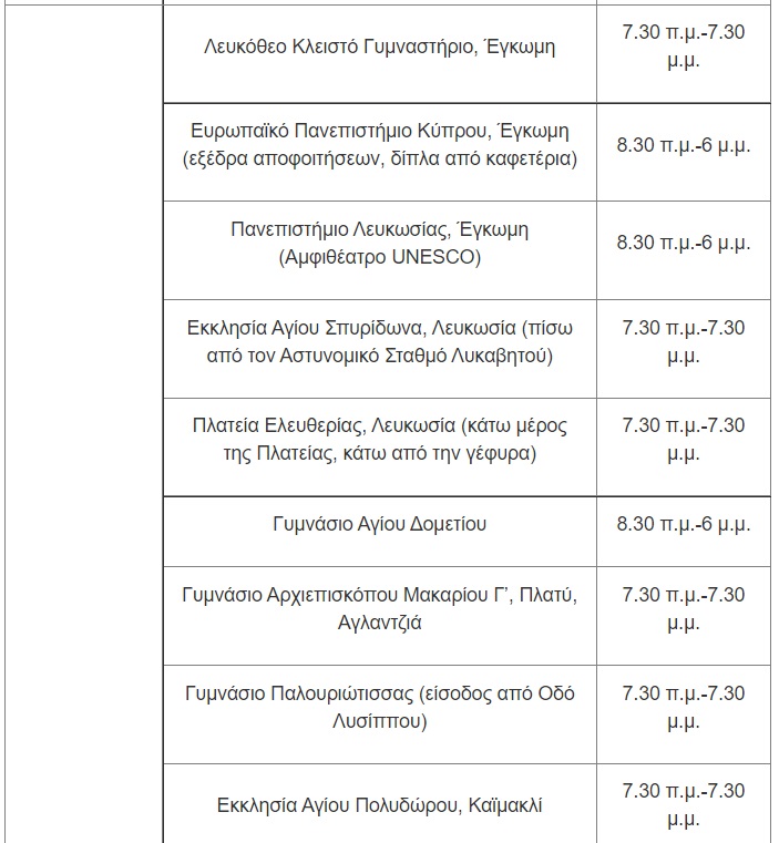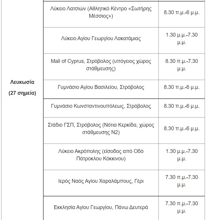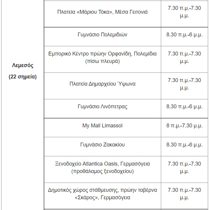 Για το Σάββατο, 5 Ιουνίου 2021, οι μονάδες δειγματοληψίας θα βρίσκονται στις ακόλουθες τοποθεσίες:
