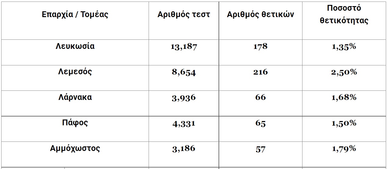 Τα θετικά rapid test σε Λάρνακα και παγκύπρια