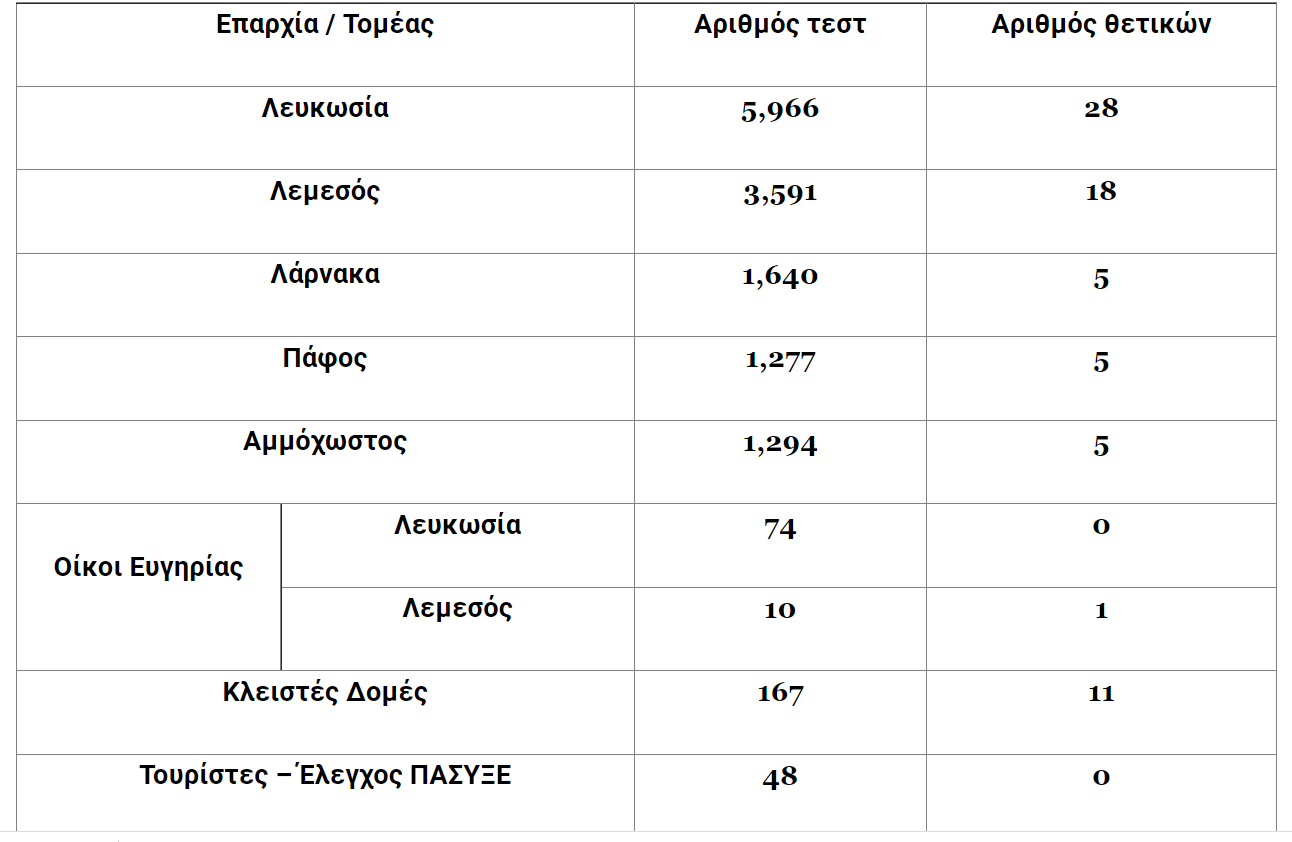 73 κρούσματα από 14,554 δείγματα που εξετάστηκαν με τη μέθοδο ταχείας ανίχνευσης αντιγόνου (antigen rapid test) μέσω του προγράμματος του Υπουργείου Υγείας ανακοινώθηκαν σήμερα.