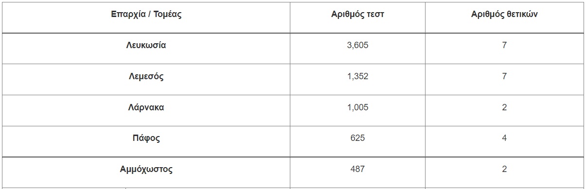 Τα θετικά rapid test σε Λάρνακα και παγκύπρια