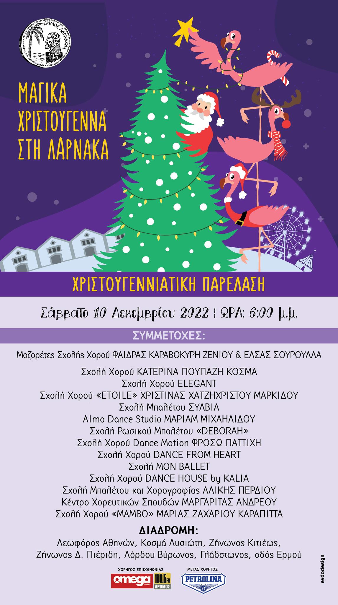 Ο Δήμος Λάρνακας διοργανώνει Χριστουγεννιάτικη Παρέλαση σήμερα Σάββατο 10 Δεκεμβρίου στις 18:00 στο εμπορικό κέντρο της πόλης.