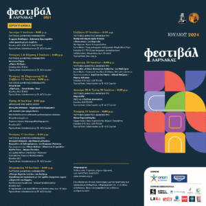 25/06/2024 Larnakaonline 0 ΠΡΟΓΡΑΜΜΑ ΦΕΣΤΙΒΑΛ 2024..docx (1) Διαβάστε όλα τα τελευταία νέα της πόλης και επαρχίας Λάρνακας Facebook Like Twitter LinkedIn Email WhatsApp Viber Διαβαστε επισης Το Ευρυβιάδειο Γυμνάσιο Λάρνακας σε κινητικότητα Erasmus+ στη Ρουμανία 29/04/2026 Larnakaonline 0 Erasmus+ 2025-2026: Μια χρονιά, ορόσημο για την ΤΕΣΕΚ Αγίου Λαζάρου Λάρνακας 29/04/2026 Larnakaonline 0 Eurostat: Kάτω από τον ευρωπαϊκό μέσο όρο για θανατηφόρα τροχαία το 2024 η Κύπρος 29/04/2026 Larnakaonline 0 Πόσο επηρεάστηκαν οι τιμές αεροπορικών εισιτηρίων και πακέτων στην Κύπρο 29/04/2026 Larnakaonline 0 Eurostat: Μείωση εργατικών ατυχημάτων στην Κύπρο 29/04/2026 Larnakaonline 0 Μήνυμα στήριξης και αλληλεγγύης στην Πορεία Χριστοδούλας 29/04/2026 Larnakaonline 0 Τυχικός: Με πρώην στενό συνεργάτη το επεισόδιο – «Μη συμμόρφωση με αποφάσεις» 29/04/2026 Larnakaonline 0 Σάρωσε η Αστυνομία: 4 συλλήψεις και εκατοντάδες έλεγχοι παγκύπρια – Πάνω από 300 τροχαίες καταγγελίες 29/04/2026 Larnakaonline 0 Υπόθεση Σάντη: Ενημερώνεται και πιάνει δουλειά το FBI 29/04/2026 Larnakaonline 0 Αυτόν ψάχνουν για επίθεση με μαχαίρι μετά από αντιπαράθεση στη Λευκωσία (φώτο) 29/04/2026 Larnakaonline 0 Πέπλο ομίχλης «σκέπασε» τη Λευκωσία (φώτο) 29/04/2026 Larnakaonline 0 Πραγματοποιούν σήμερα συγκέντρωση διαμαρτυρίας στην είσοδο του Λιμανιού Λάρνακας 29/04/2026 Larnakaonline 0