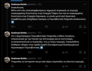 Όπως ανακοίνωσε στην πλατφόρμα Χ οι πυρκαγίες τέθηκαν έγκαιρα υπό έλεγχο και δεν προκάλεσαν μεγάλες καταστροφές, ωστόσο κρίθηκε αναγκαία η επιτήρηση των συγκεκριμένων περιοχών από αστυνομικά περίπολα.