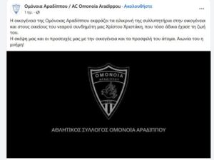 Η οικογένεια της Ομόνοιας Αραδίππου εκφράζει τα ειλικρινή της συλλυπητήρια στην οικογένεια και στους οικείους του νεαρού.