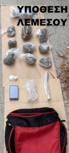 Τσάντα με κάνναβη, κοκαΐνη και αντικείμενα εντόπισαν μέλη της ΥΚΑΝ σε πεζοδρόμιο στην περιοχή της Λεμεσού.