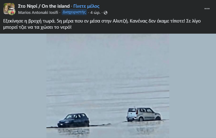 Δε λένε να βγουν τα 2 αυτοκίνητα. Είναι η 5η συνεχόμενη μέρα που βρίσκονται κολυμένα, θέτοντας σε κίνδυνο το οικοσύστημα της Αλυκής.