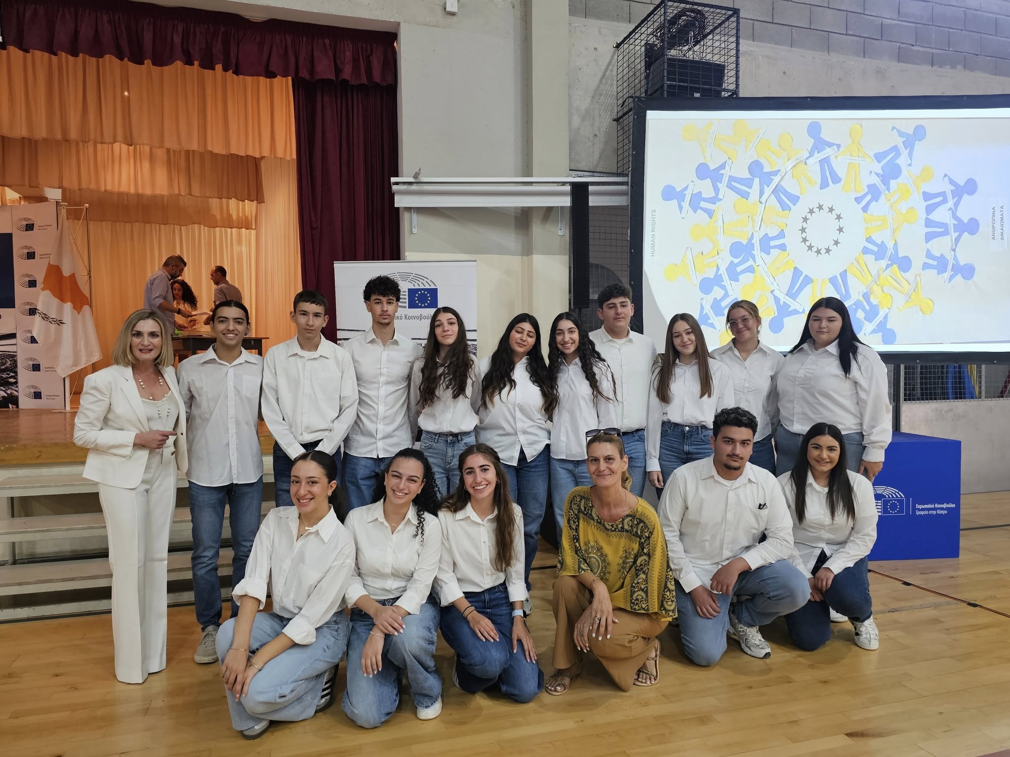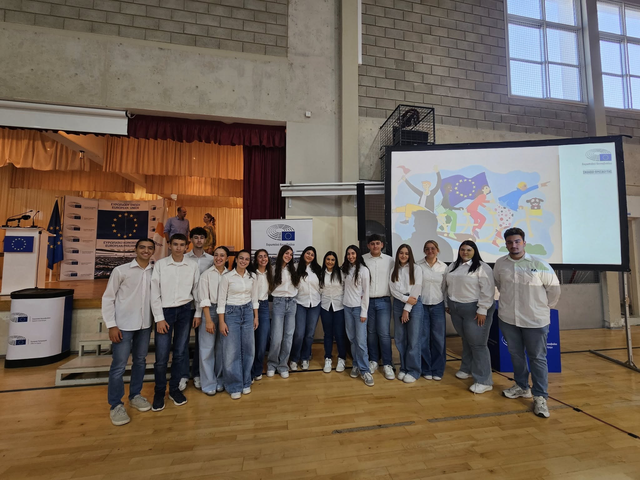 Μαθητές του Λυκείου Αγίου Γεωργίου Λάρνακας στην τελετή βράβευσης στο πρόγραμμα σχολείο-Πρεσβευτής του Ευρωπαϊκού Κοινοβουλίου 2024-2025