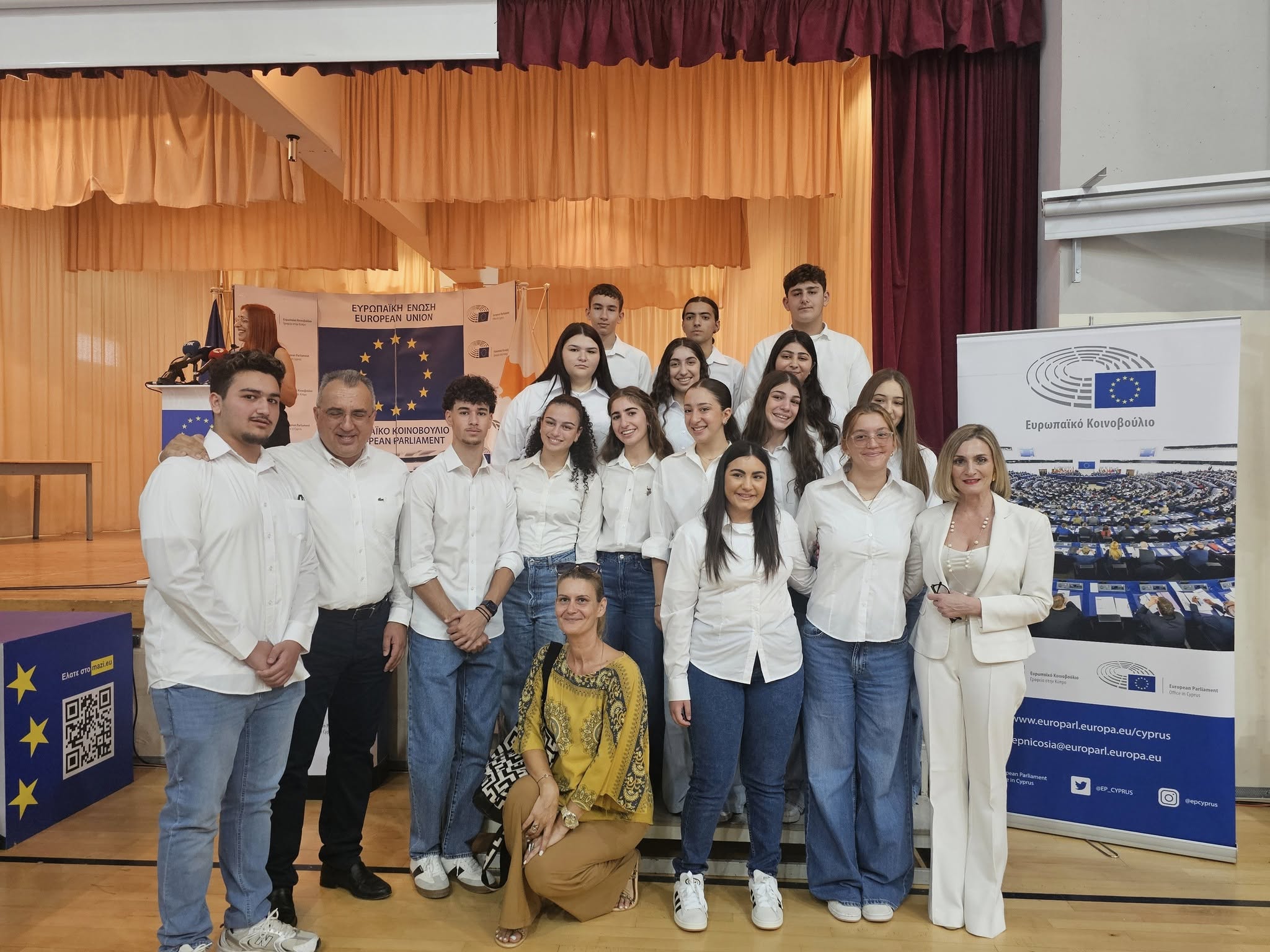 Τo Γραφείο του Ευρωπαϊκού Κοινοβουλίου στην Κύπρο, σε συνεργασία με το Υπουργείο Παιδείας, Αθλητισμού και Νεολαίας, διοργάνωσαν την τελετή βράβευσης δόκιμων και ανώτερων πρεσβευτών, που συμμετείχαν στο Πρόγραμμα Σχολείο-Πρεσβευτής του Ευρωπαϊκού Κοινοβουλίου 2024-2025, καθώς και των μαθητών/τριών, του Λυκείου Αγίου Γεωργίου Λάρνακας, που διακρίθηκαν στον Παγκύπριο Διαγωνισμό Παραγωγής Σύντομου Βίντεο 2024-2025 με θέμα: “Η Κύπρος στην ΕΕ: οφέλη και προοπτικές μέσα από την 20χρονη πορεία της”.