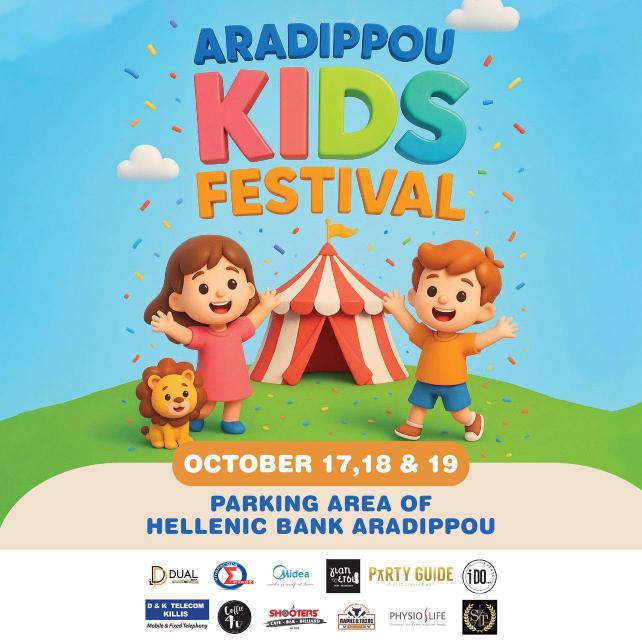 Η Αραδίππου φοράει τα γιορτινά της και από τις 17 έως τις 19 Οκτωβρίου 2025 υποδέχεται για δεύτερη συνεχόμενη χρονιά το πιο συναρπαστικό οικογενειακό γεγονός της χρονιάς: Aradippou Kids Festival 2025