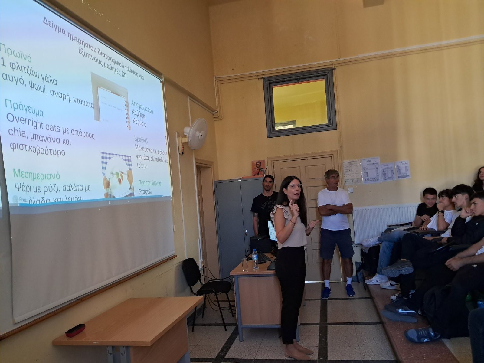 Η Επιτροπή Σχολικού Κυλικείου και Αγωγής Καταναλωτή του Λυκείου Αγίου Γεωργίου Λάρνακας, διοργάνωσε διάλεξη με θέμα «Διατροφή για άριστη απόδοση στο σχολείο» με ομιλήτρια τη δρα Έλενα Χατζημπέη, Επίκουρη Καθηγήτρια Κλινικής Διαιτολογίας, την οποία παρακολούθησαν μαθητές της Β’ και Γ’ Λυκείου.