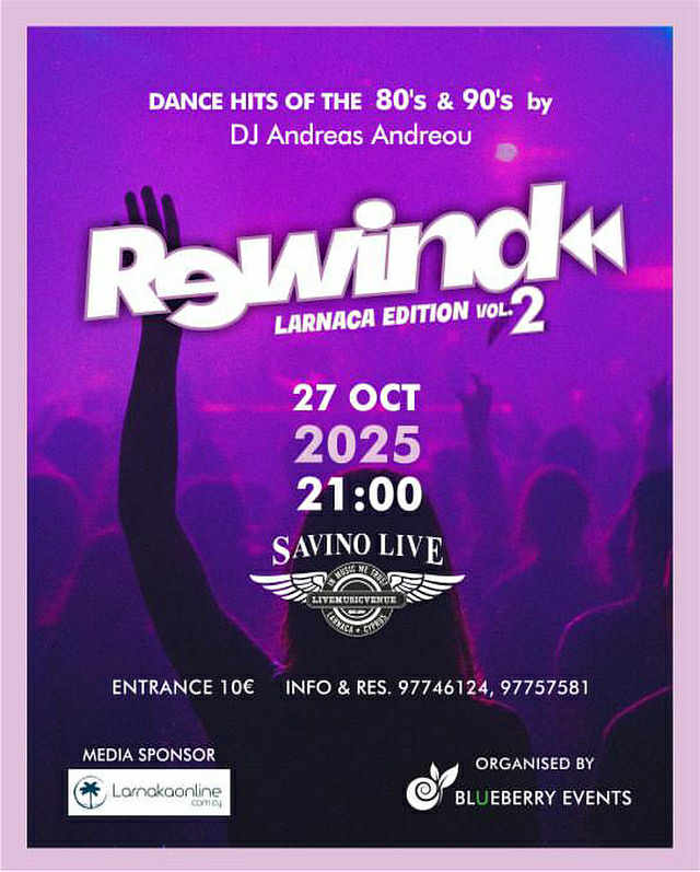 To Rewind Larnaca Edition επιστρέφει… με τον DJ Andrea Andreou με τις καλύτερες επιτυχίες της δεκαετίας του ‘80 και ‘90 στο Savino Live στη Λάρνακα