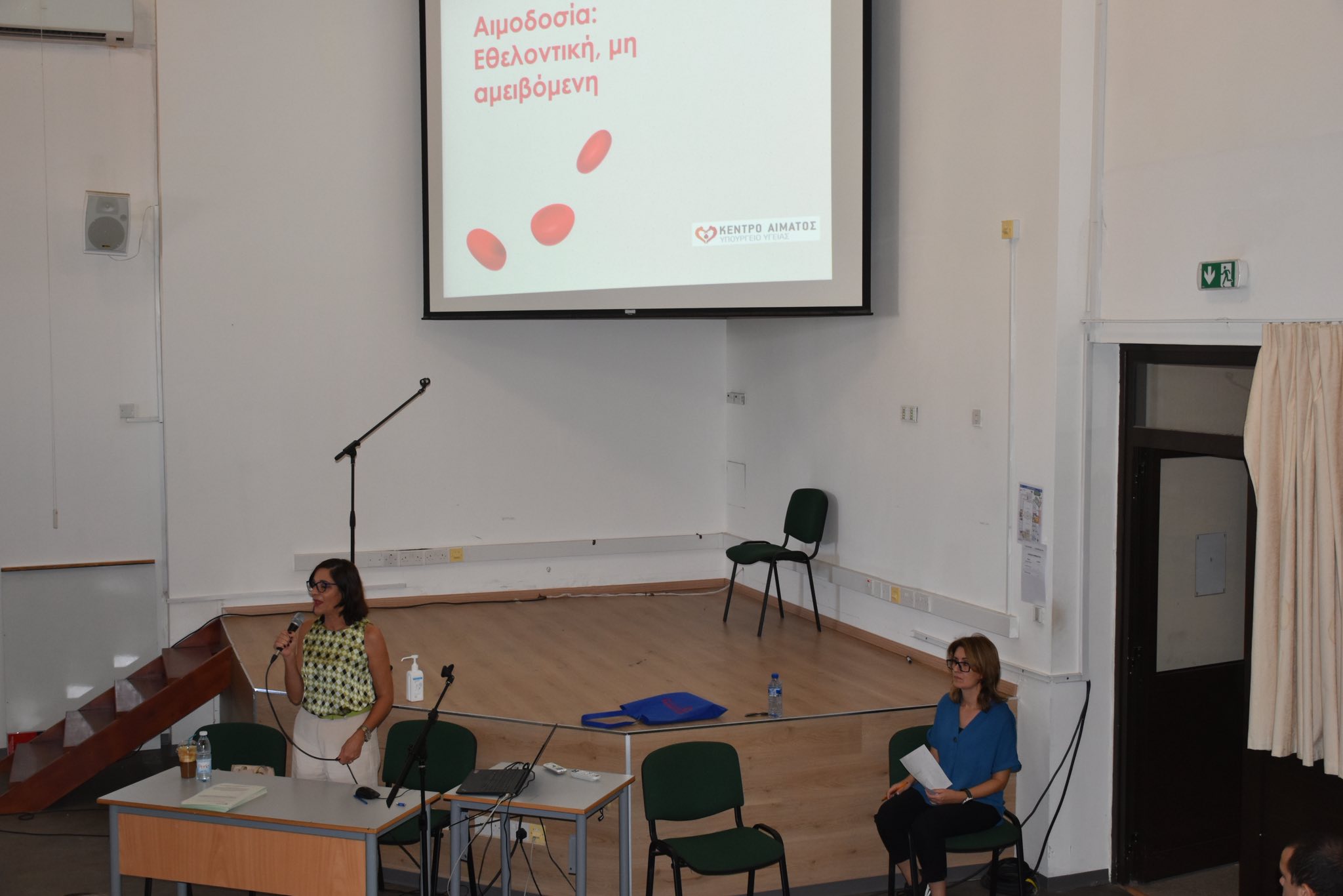 Σκοπός της διάλεξης ήταν η ενημέρωση και η ευαισθητοποίηση των τελειοφοίτων γύρω από τη σημασία της εθελοντικής προσφοράς αίματος για τον συνάνθρωπό μας. Η κυρία Στέλλα Πέτρου, λειτουργός του Κέντρου Αίματος, ενημέρωσε τους μαθητές και μαθήτριες της Γ΄ Λυκείου για τα οφέλη της αιμοδοσίας και