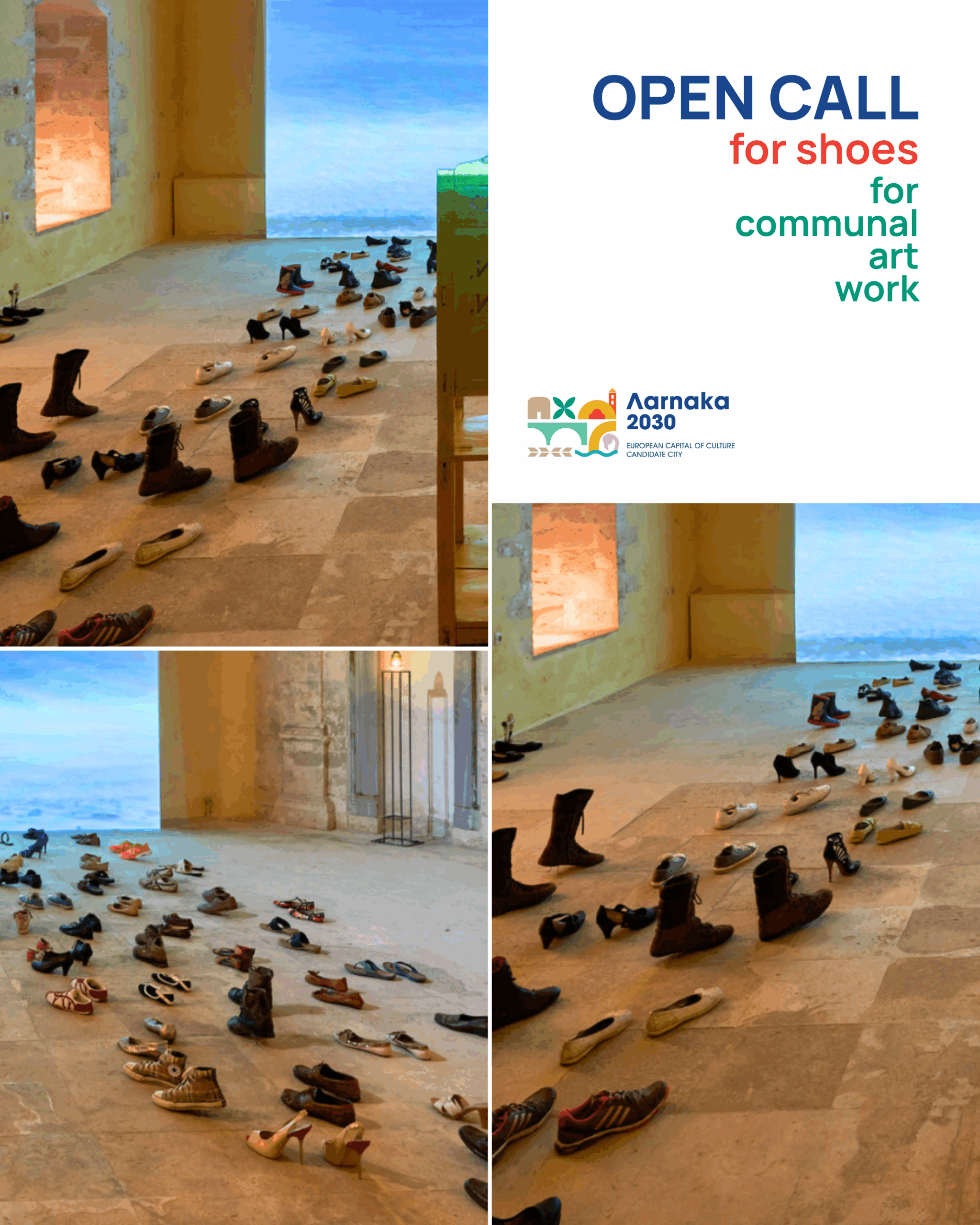 Anyone who wishes may lend a pair of used shoes to become part of this artwork. With a single pair of old shoes, you co-create the collective imprint of Larnaka’s memory and support the city’s effort to become ECoC 2030!