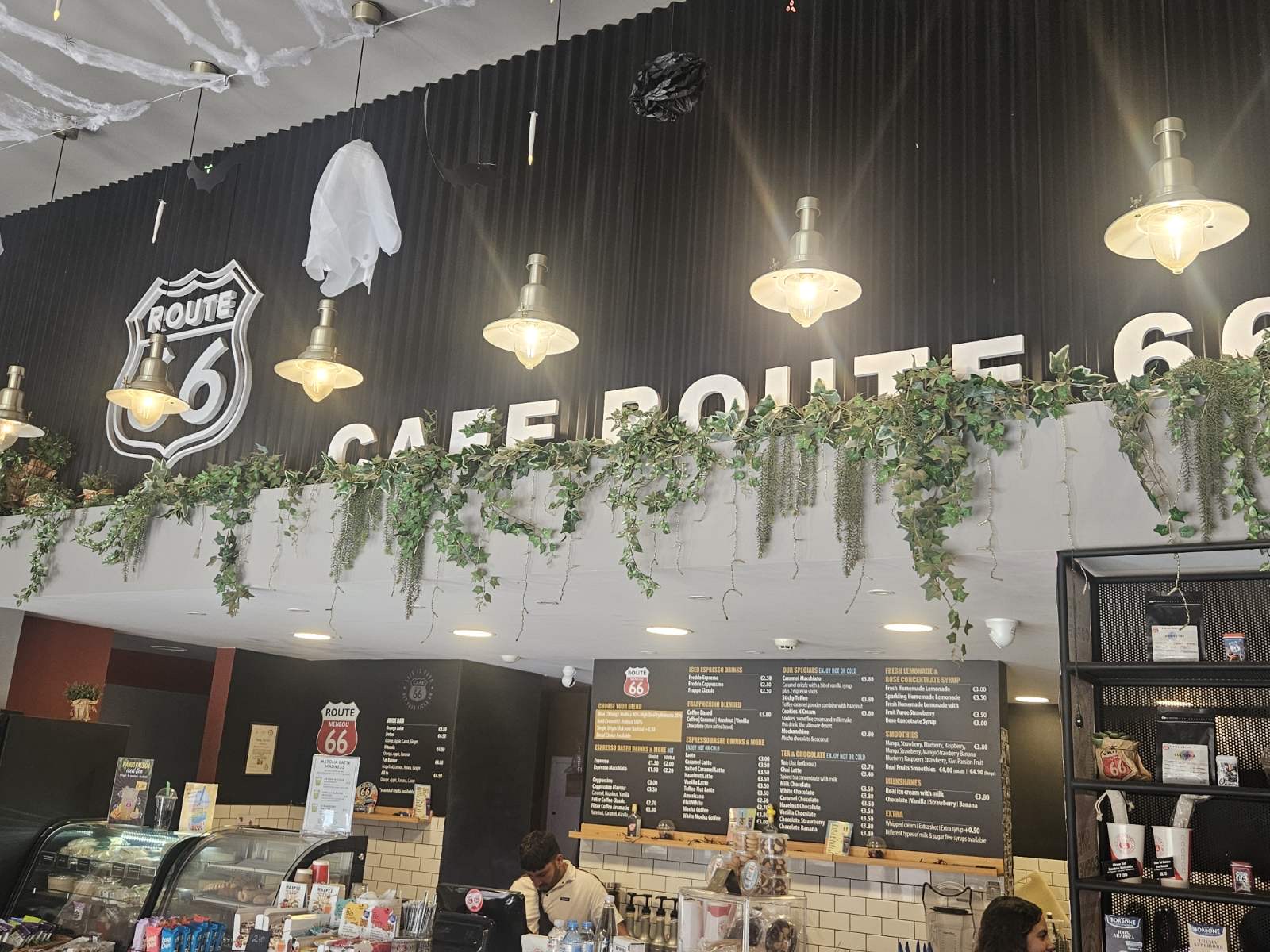 Το “Route 66 CAFE” έχει καφέδες, φρέσκους χυμούς, sandwiches και διάφορα snacks.