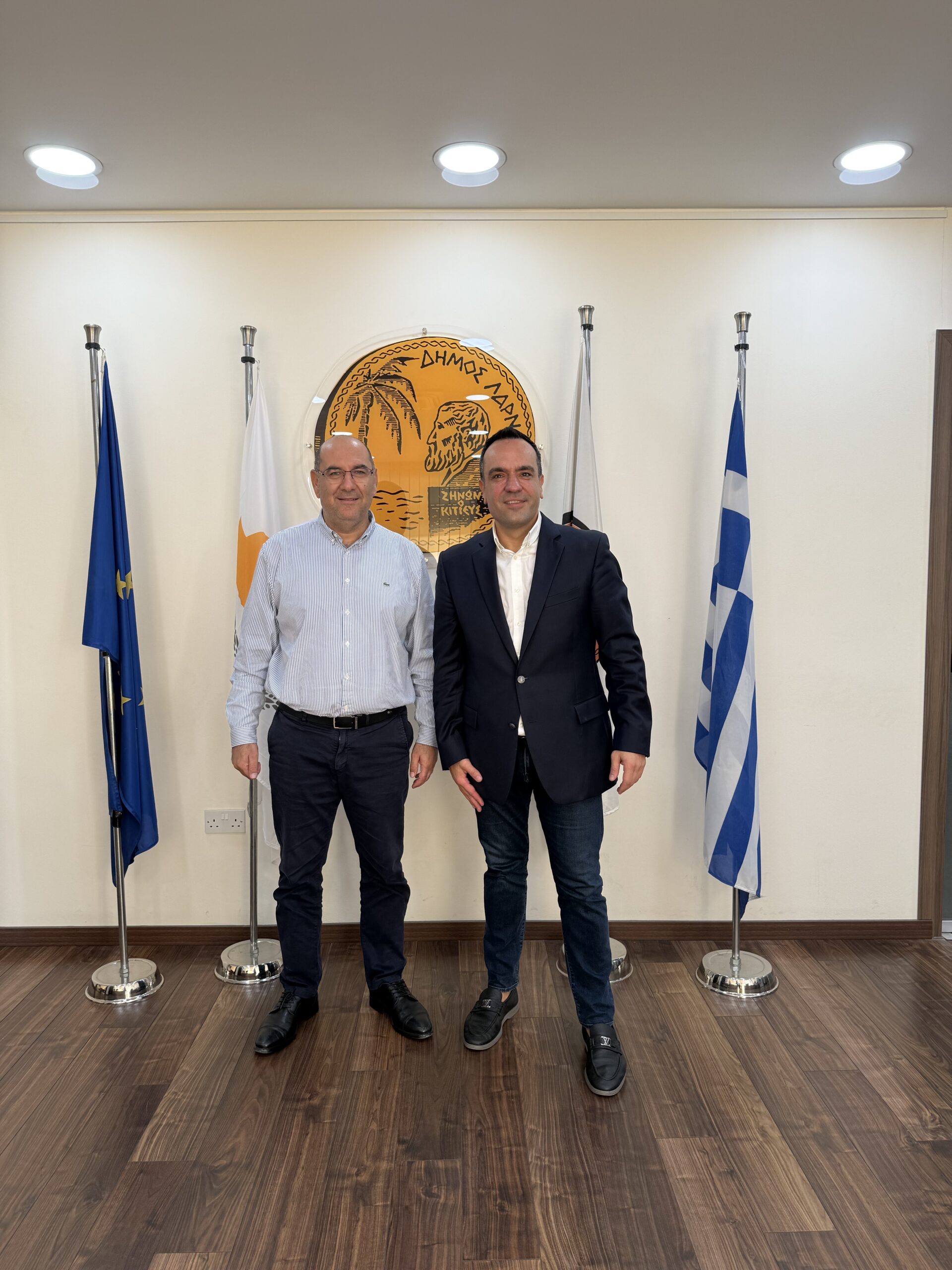 Ο Δήμαρχος Λάρνακας, κ. Ανδρέας Βύρας, υποδέχθηκε το μεσημέρι της Τρίτης, στο γραφείο του, τον τέως Δήμαρχο Μυκόνου και Αντιπρόεδρο του Κογκρέσου Τοπικών και Περιφερειακών Αρχών του Συμβουλίου της Ευρώπης, κ. Κωνσταντίνο Π. Κουκά.