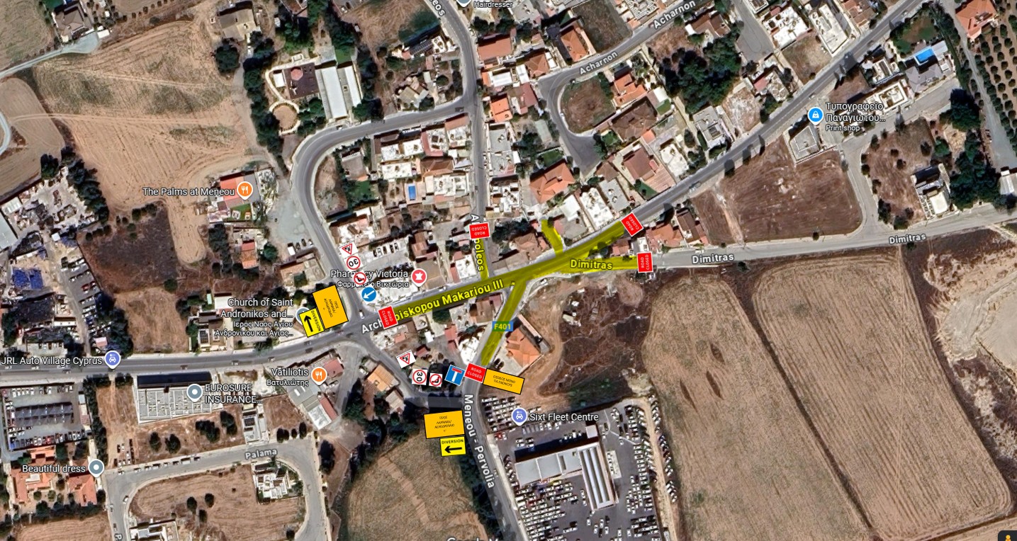 Στο επισυνημμένο σχέδιο παρουσιάζεται το τμήμα του δρόμου που θα παραμείνει κλειστό. Για την διακίνηση των οχημάτων θα υπάρχει οδική σήμανση. Οι διερχόμενοι οδηγοί προτρέπονται να είναι ιδιαίτερα προσεκτικοί και να ακολουθούν τις προειδοποιητικές Πινακίδες και τα μέτρα κυκλοφοριακής διαχείρισης που έχουν συμφωνηθεί με τις Αρμόδιες Αρχές.