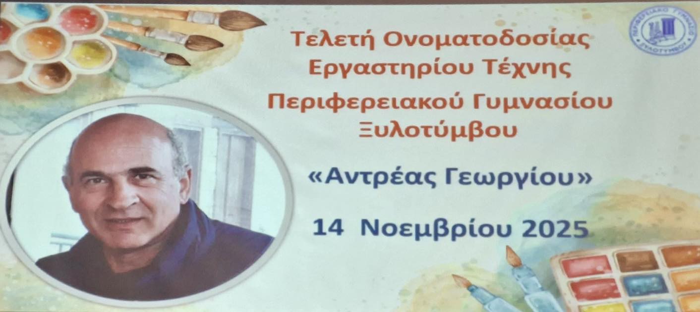 Πραγματοποιήθηκε πρόσφατα στο Περιφερειακό Γυμνάσιο Ξυλοτύμβου μια ιδιαίτερα συγκινητική και ουσιαστική εκδήλωση, η τελετή ονοματοδοσίας του εργαστηρίου Τέχνης προς τιμήν του αείμνηστου καθηγητή, Αντρέα Γεωργίου.