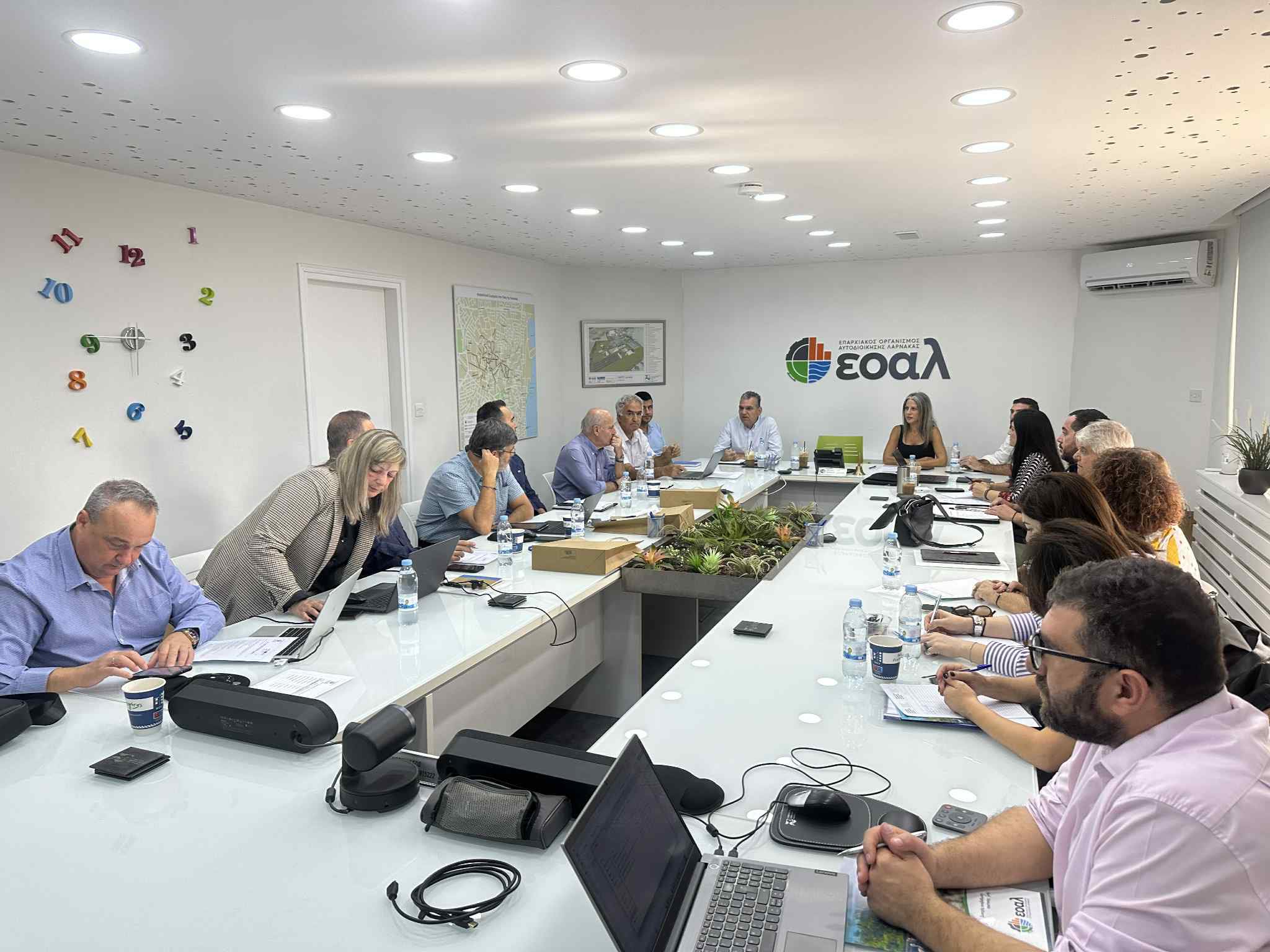 Κατά τη διάρκεια της συνάντησης, έγινε συζήτηση για την πρόοδο του έργου, ανταλλαγή τεχνογνωσίας και πραγματοποιήση επισκέψεων σε βασικές υποδομές του Επαρχιακού Οργανισμού Αυτοδιοίκησης Λάρνακας, όπως τον Σταθμό Επεξεργασίας Λυμάτων Λάρνακας, τις υδατοδεξαμενές, καθώς και την περιοχή Λευκάρων, όπου είναι μέρος του «πιλοτικού» που θα υλοποιηθεί στο έργο εκ μέρους του ΕΟΑ Λάρνακας.