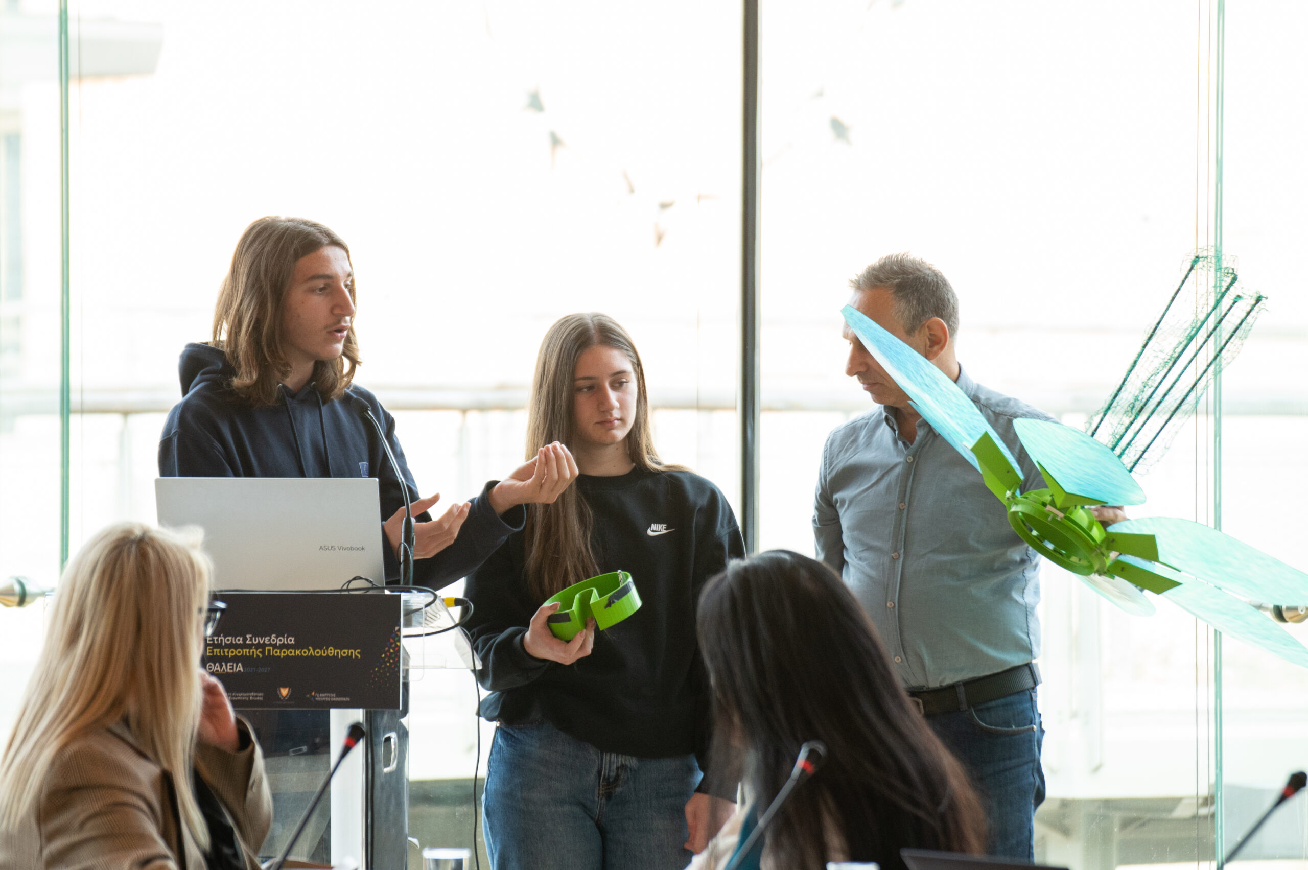 Στο πλαίσιο της παρουσίασης του έργου«Ανάπτυξη Τεχνικής και Επαγγελματικής Εκπαίδευσης και Κατάρτισης», ομάδα καθηγητών και μαθητών της ΤεχνικήςΣχολής Μακάριος Γ’, παρουσίασαν κλάδους/ειδικότητες των αναβαθμισμένων Τεχνικών Σχολών και τόνισαν τη συνεισφορά του έργουστη βελτίωση της διδασκαλίας και καθημερινής λειτουργίας των Σχολών αυτών.