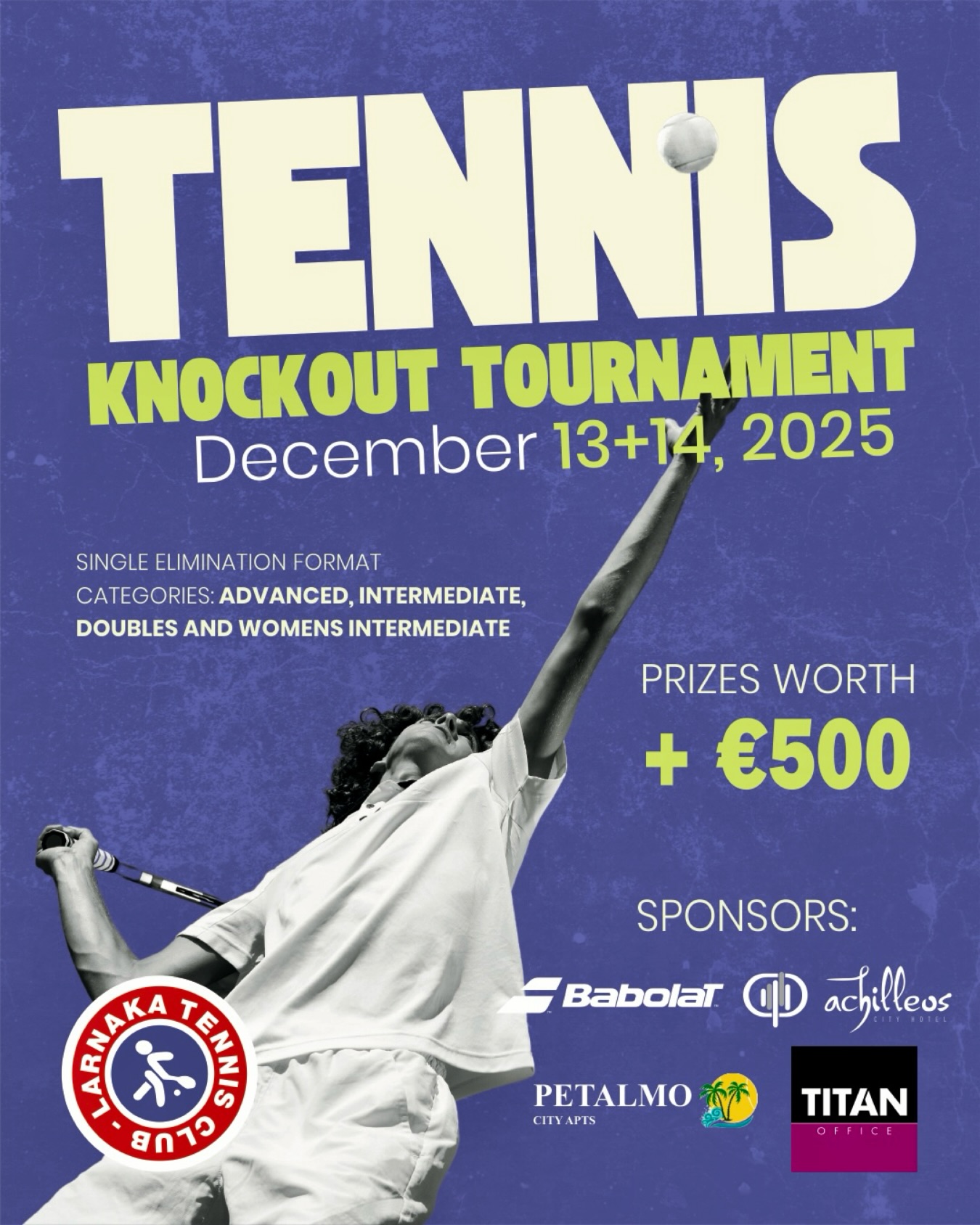 Για πρώτη φορά, ο Όμιλος Αντισφαίρισης Λάρνακας, διοργανώνει το Larnaka Tennis Club Knockout Tournament, το οποίο θα διεξαχθεί στις 13 & 14 Δεκεμβρίου 2025!