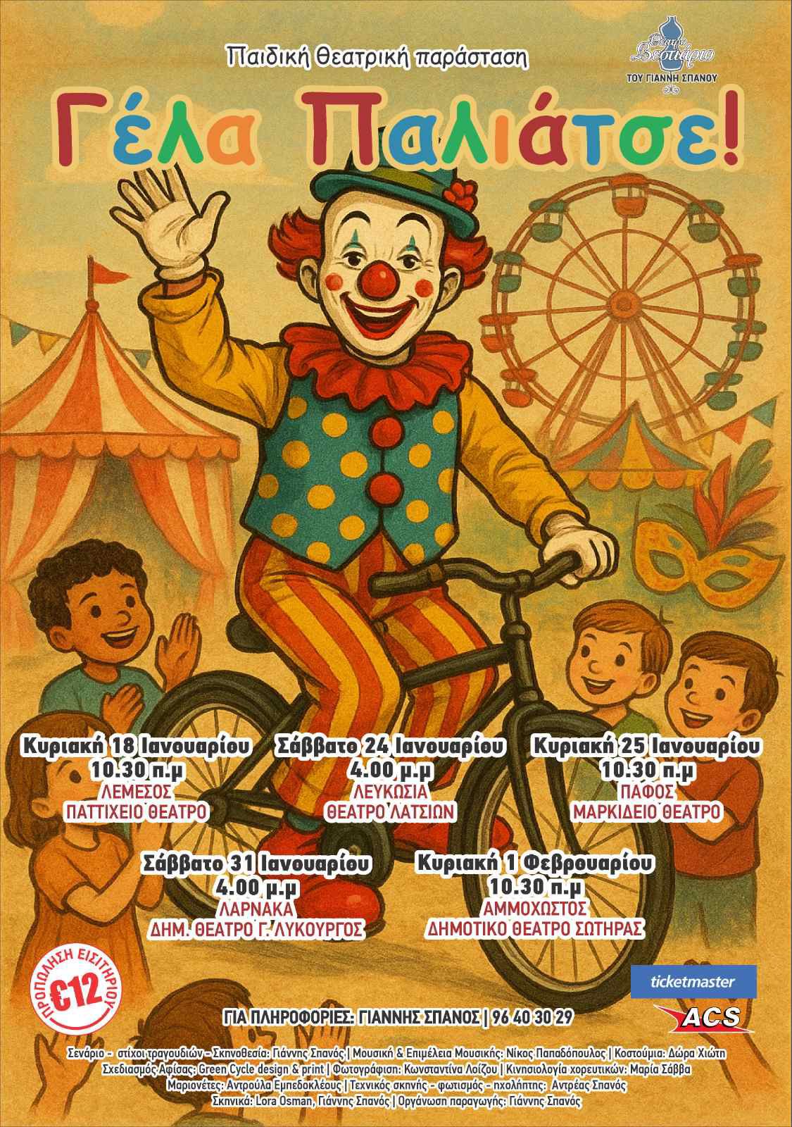 “Γέλα Παλιάτσε”, η νέα Παιδική Θεατρική Παράσταση στο Δημοτικό Θέατρο Λάρνακας Γ. Λυκούργος
