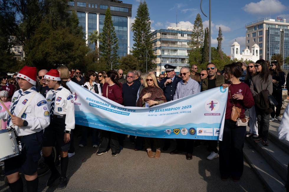 Η εκδήλωση «Κολυμπάμε με τους ΟΥΚ για τους Μικρούς μας Ήρωες» πραγματοποιήθηκε με αφετηρία την Ακτή Ολυμπίων και τερματισμό την αποβάθρα του παλιού λιμανιού Λεμεσού. Συνοδοιπόροι σε αυτή την προσπάθεια ήταν και φέτος η Αστυνομία Κύπρου, η Εθνική Φρουρά και η Cyjetski.