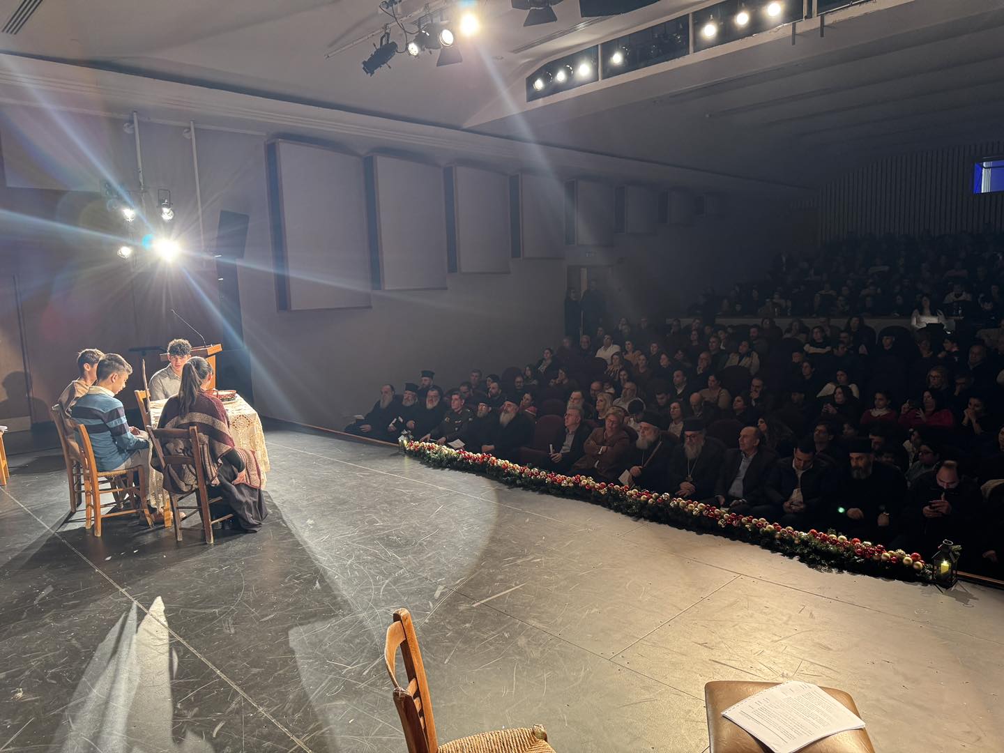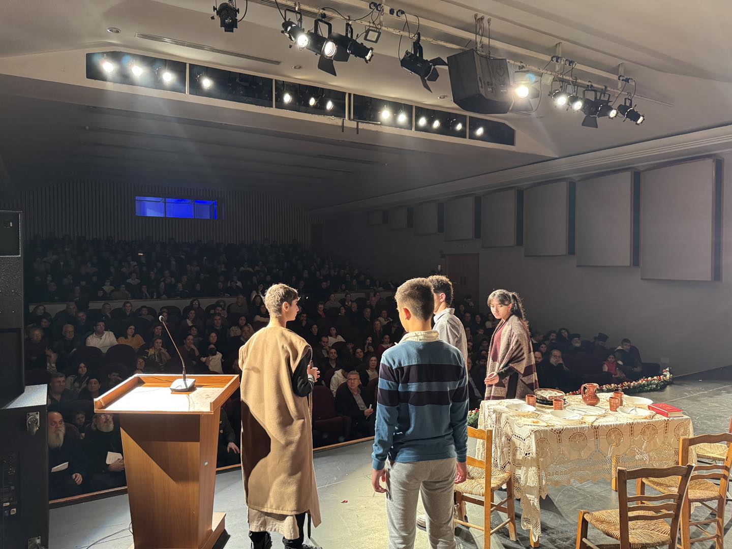 Οι θεατές είχαν την ευκαιρία να παρακολουθήσουν το θεατρικό δρώμενο με τίτλο “Το Βλογημένο Μαντρί”, του Φώτη Κόντογλου, σε διασκευή του πατρός Μιχαήλ Σιδερά. Τα παιδιά των συνάξεων Ιερού Ναού Αγίου Γεωργίου Πύλας χάρισαν μία μεστή νοημάτων παράσταση.
