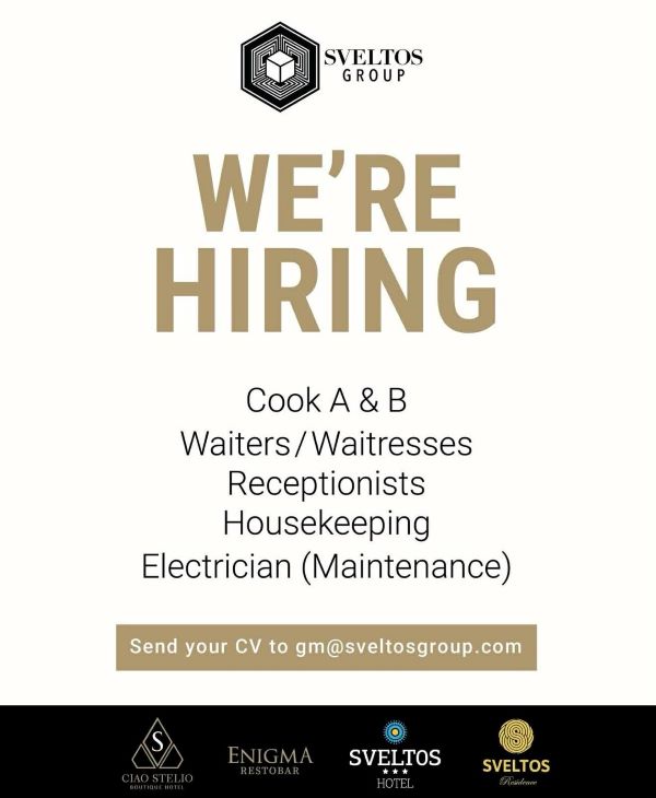 Ο όμιλος Sveltos Group, με δυναμική παρουσία στον χώρο της φιλοξενίας και της εστίασης, αναζητά προσωπικό για τη στελέχωση των ομάδων του.