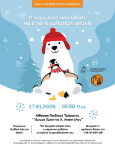 Το Σύγχρονο Παιδικό Θέατρο Σκιών, παρουσιάζει αυτό το Σάββατο 17 Ιανουαρίου 2026 και ώρα 10.30 π.μ. στη Δημοτική Βιβλιοθήκη Λάρνακας, στην Αίθουσα του Παιδικού Τμήματος «Ίδρυμα Χριστίνα Α. Αποστόλου» την παιδική θεατρική παράσταση “Ο χειμώνας που ήθελε να είναι η καλύτερη εποχή”.