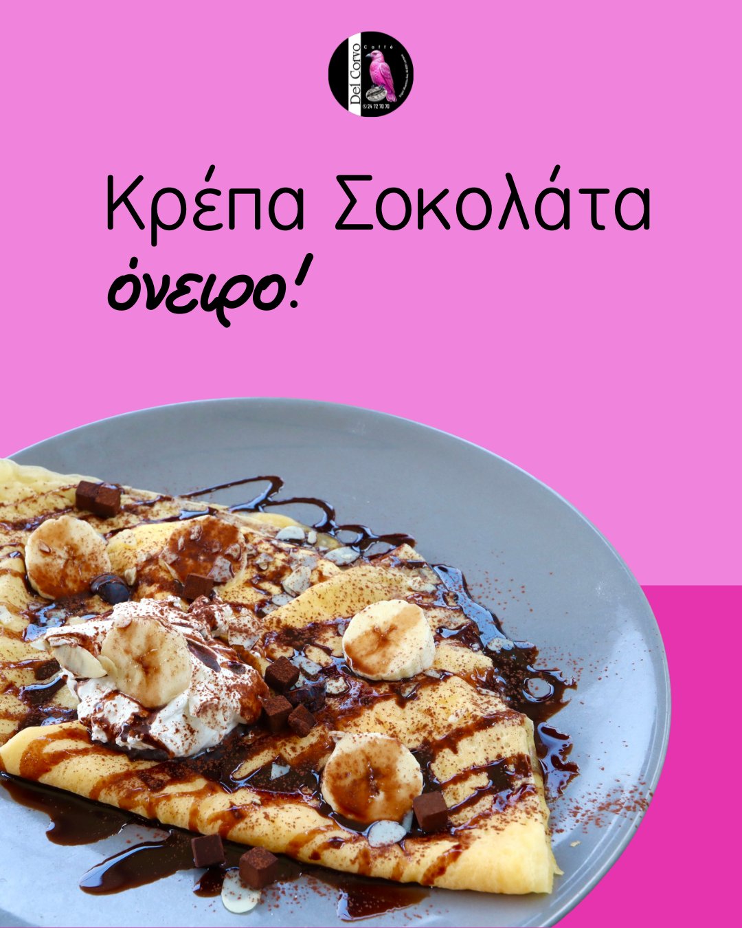 Λιώσε στην απόλαυση της chocolate–banana κρέπας μας.