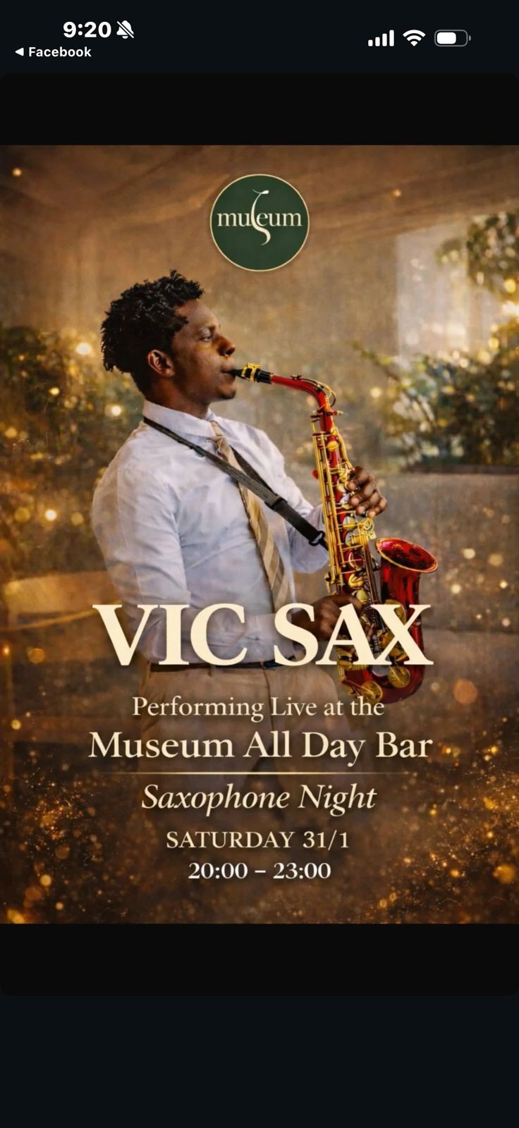 Το βράδυ του Σαββάτου αποκτά άλλη ενέργεια στο Museum All Day Bar & Restaurant, με τον μοναδικό Vic Sax να ανεβαίνει στη σκηνή για ένα live saxophone performance που υπόσχεται να μετατρέψει τη βραδιά σε εμπειρία.