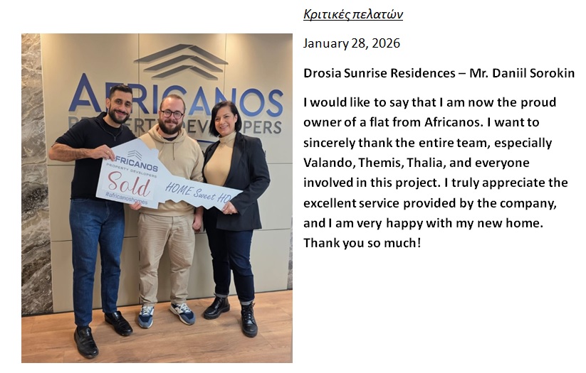 Η Africanos Property Developers ολοκλήρωσε με επιτυχία το έργο Drosia Sunrise