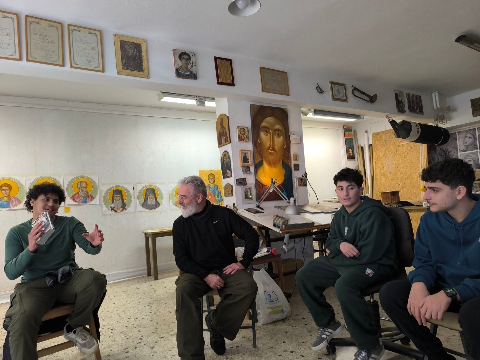 Η μέρα ολοκληρώθηκε με εργαστήριο αγιογραφίας, όπου οι μαθητές/τριες ενημερώθηκαν για τα στάδια δημιουργίας των εικόνων και γνώρισαν από κοντά την Τέχνη της Αγιογραφίας.
