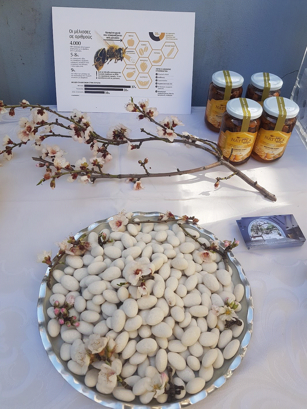 Σας προσκαλούμε το Σάββατο 28 Φεβρουαρίου και την Κυριακή 1 Μαρτίου, να απολαύσετε λιχουδιές από μέλι και αμύγδαλο, ενώ θα έχουμε την ευκαιρία να γνωρίσουμε 15 τοπικές ποικιλίες αμυγδαλιάς. Θα εξερευνήσουμε τον κόσμο της μέλισσας, τα ταξίδια της, τη συλλογή νέκταρος και τη σημαντική διαδικασία της επικονίασης.