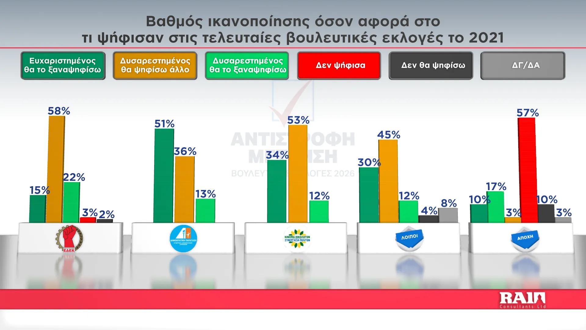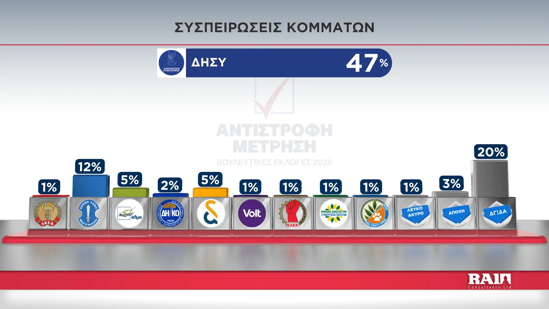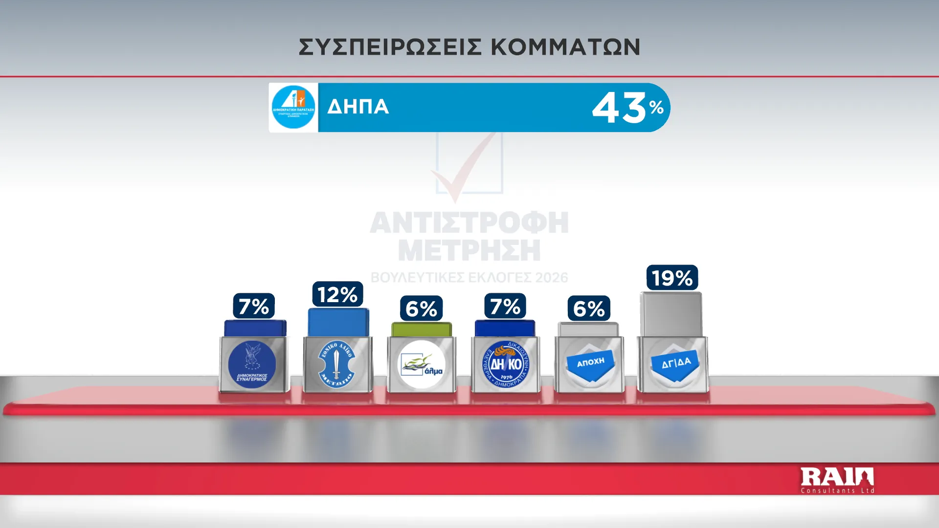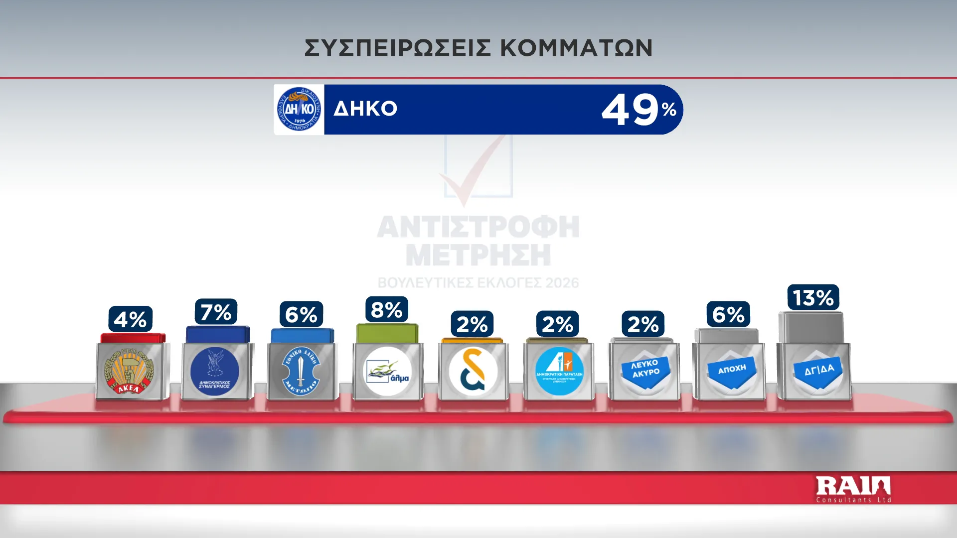 Τα αποτελέσματα παρουσίασε στην εκπομπή του Alpha Κύπρου «Αντίστροφη Μέτρηση» με την Αιμιλία Κενεβέζου, ο Εκτελεστικός Πρόεδρος της RAI Consultants Ολύμπιος Τουμάζου. Συμμετείχαν ο Διευθυντής Ειδήσεων του Alpha Κύπρου Γιώργος Κασκάνης και η Πολιτική αναλύτρια Μαρίνα Οικονομίδου.
