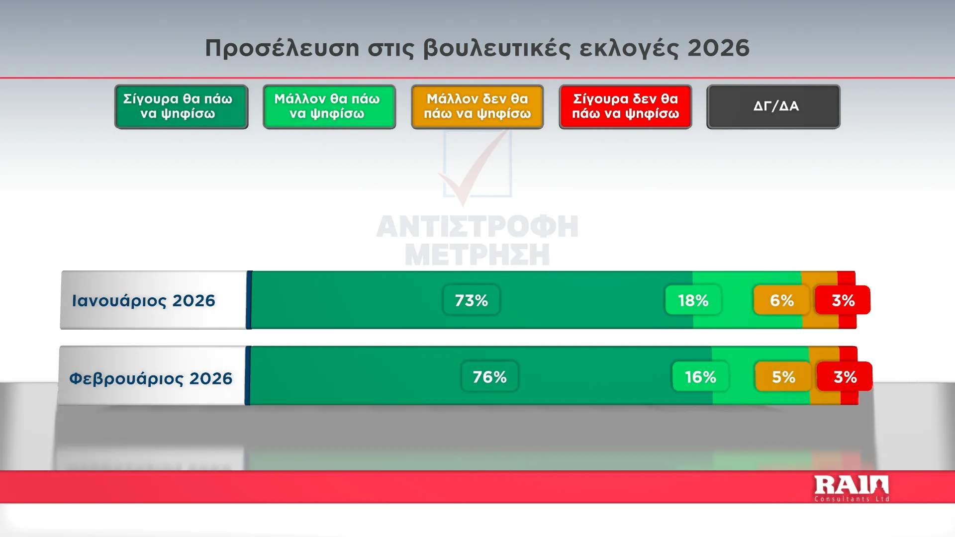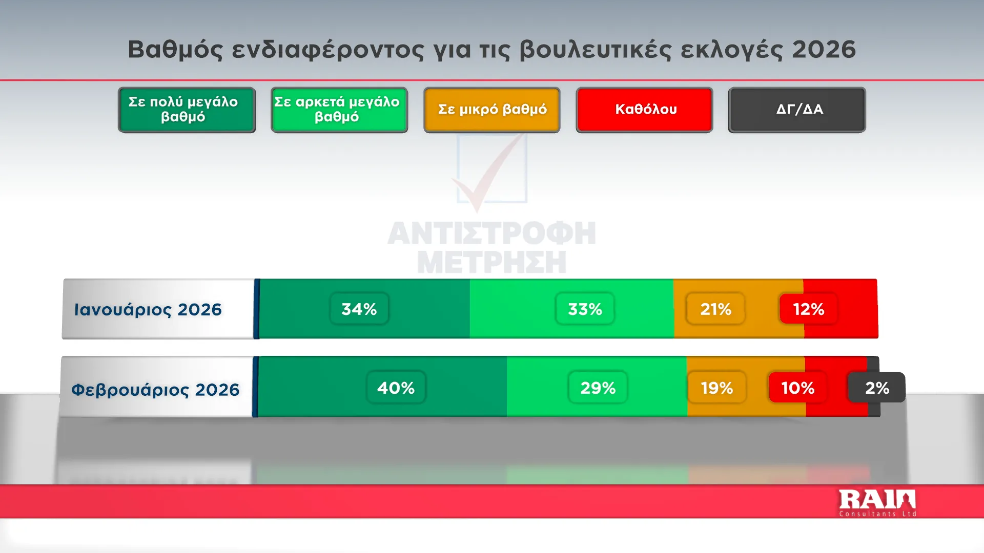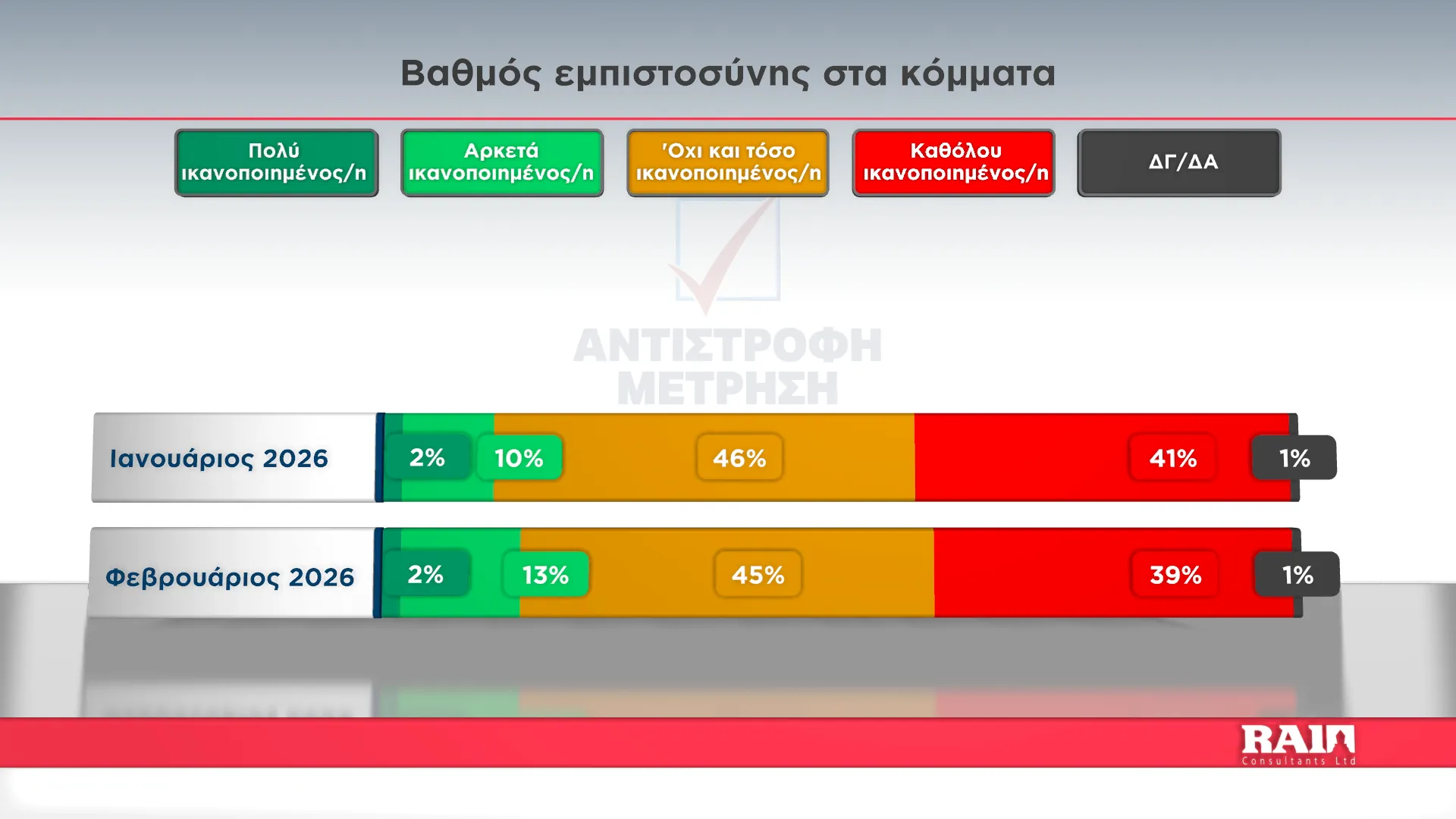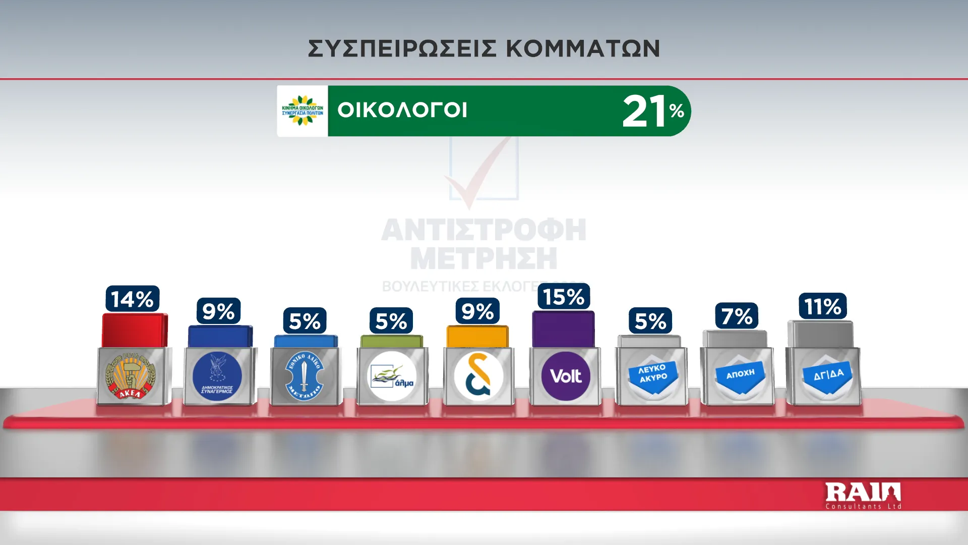 Τα αποτελέσματα παρουσίασε στην εκπομπή του Alpha Κύπρου «Αντίστροφη Μέτρηση» με την Αιμιλία Κενεβέζου, ο Εκτελεστικός Πρόεδρος της RAI Consultants Ολύμπιος Τουμάζου. Συμμετείχαν ο Διευθυντής Ειδήσεων του Alpha Κύπρου Γιώργος Κασκάνης και η Πολιτική αναλύτρια Μαρίνα Οικονομίδου.