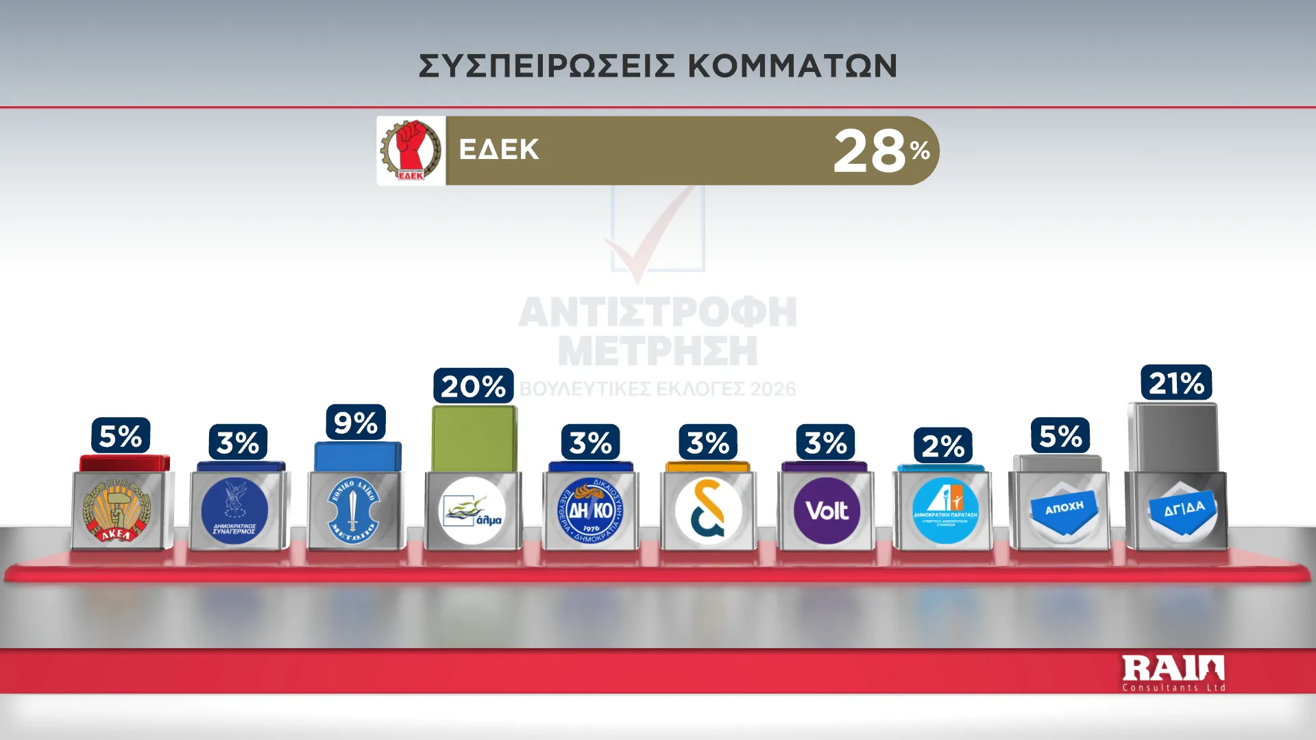 Πρωτιά ΑΚΕΛ, ανακάμπτει το ΔΗΚΟ, εκτός Βουλής ΕΔΕΚ ΔΗΠΑ και Οικολόγοι (Δημοσκόπηση ΑΛΦΑ-Πίνακες)