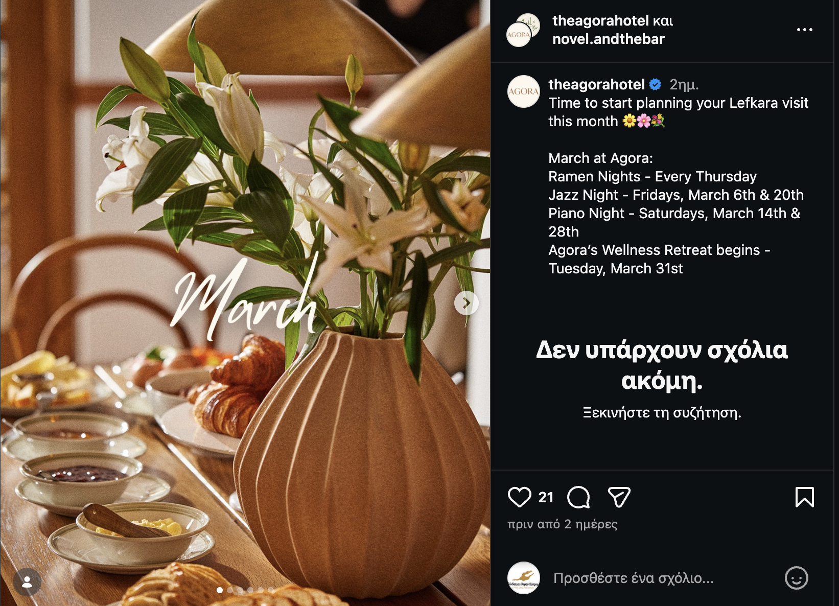 Η γαστρονομική σκηνή στα Λεύκαρας αποκτά νέο ενδιαφέρον αυτόν τον μήνα, με το Ramen Nights να γίνεται η απόλυτη αφορμή για μια ξεχωριστή έξοδο κάθε Πέμπτη. Το The Agora Hotel προσκαλεί τους λάτρεις της ιαπωνικής κουζίνας να απολαύσουν αυθεντικές γεύσεις ramen σε έναν ζεστό και φιλόξενο χώρο.