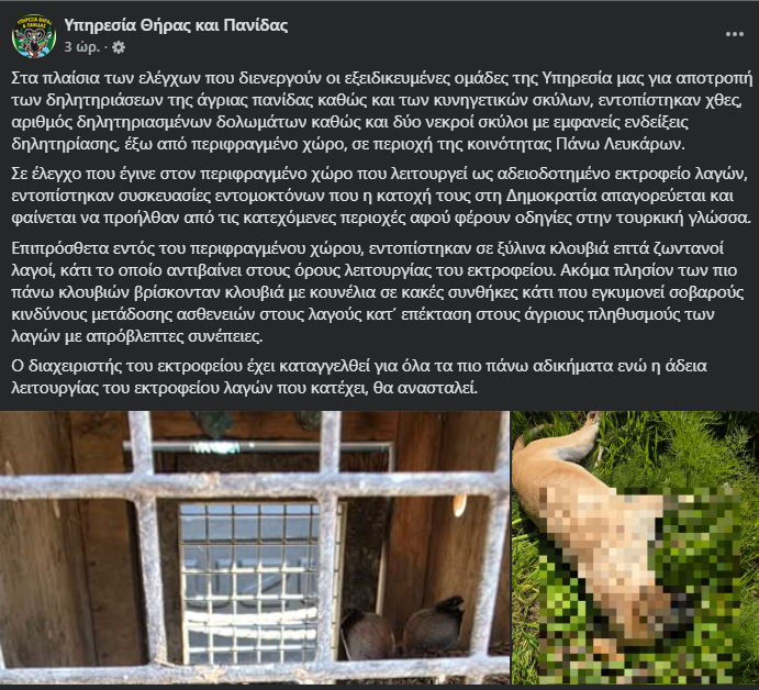 Πάνω Λεύκαρα: Εντοπίστηκαν νεκροί σκύλοι, λαγοί σε κλουβιά & παράνομα εντομοκτόνα