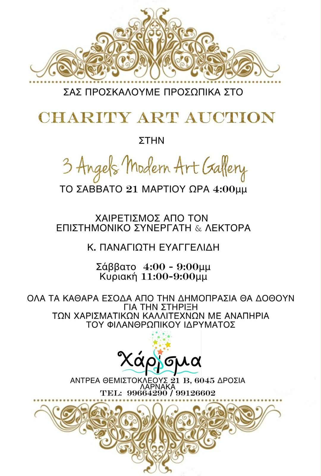 Home ΛΑΡΝΑΚΑ ΕΚΔΗΛΩΣΕΙΣ Φιλανθρωπική εκδήλωση Charity Art Auction στην “3 Angels Modern Art Gallery” στη Δρόσια