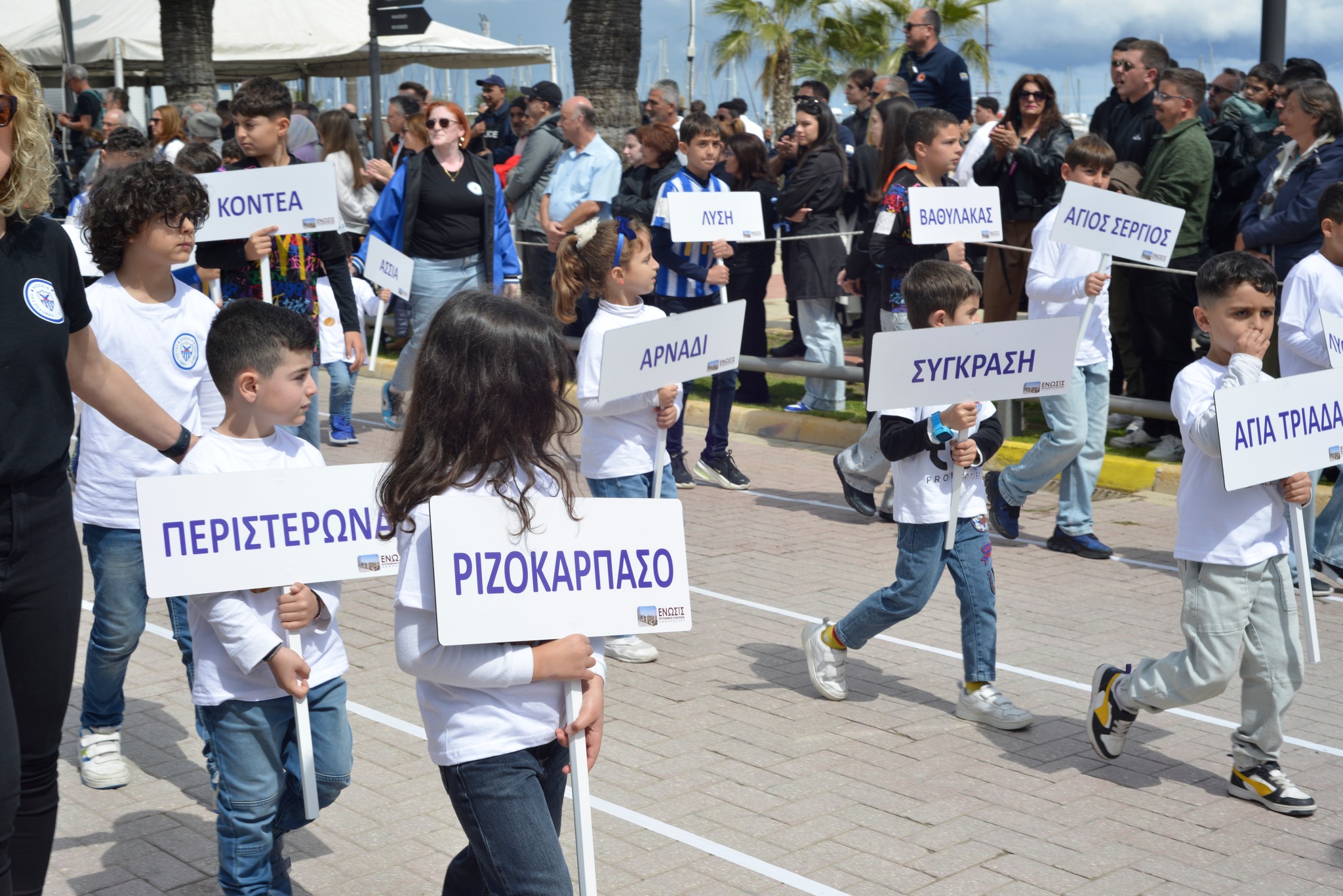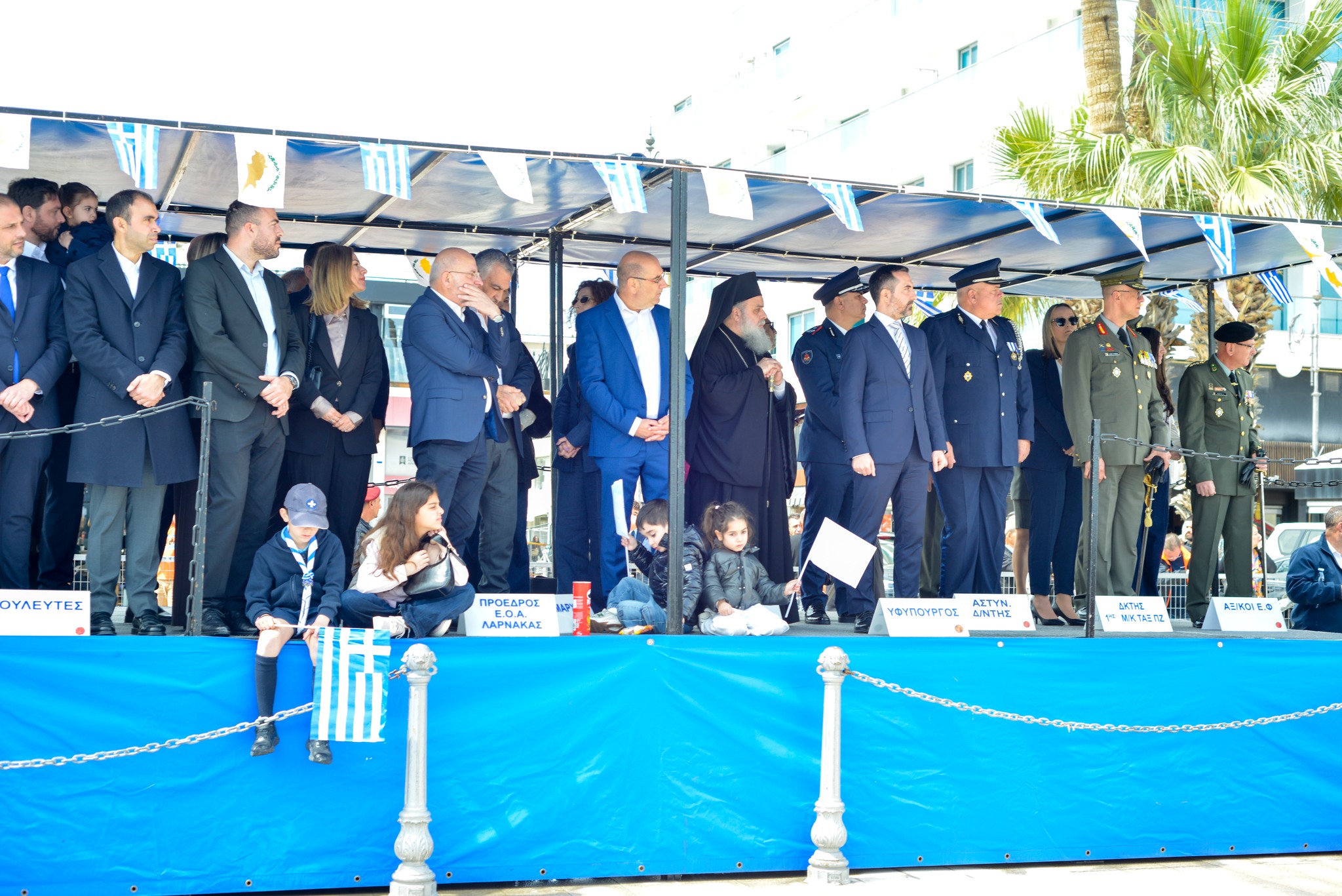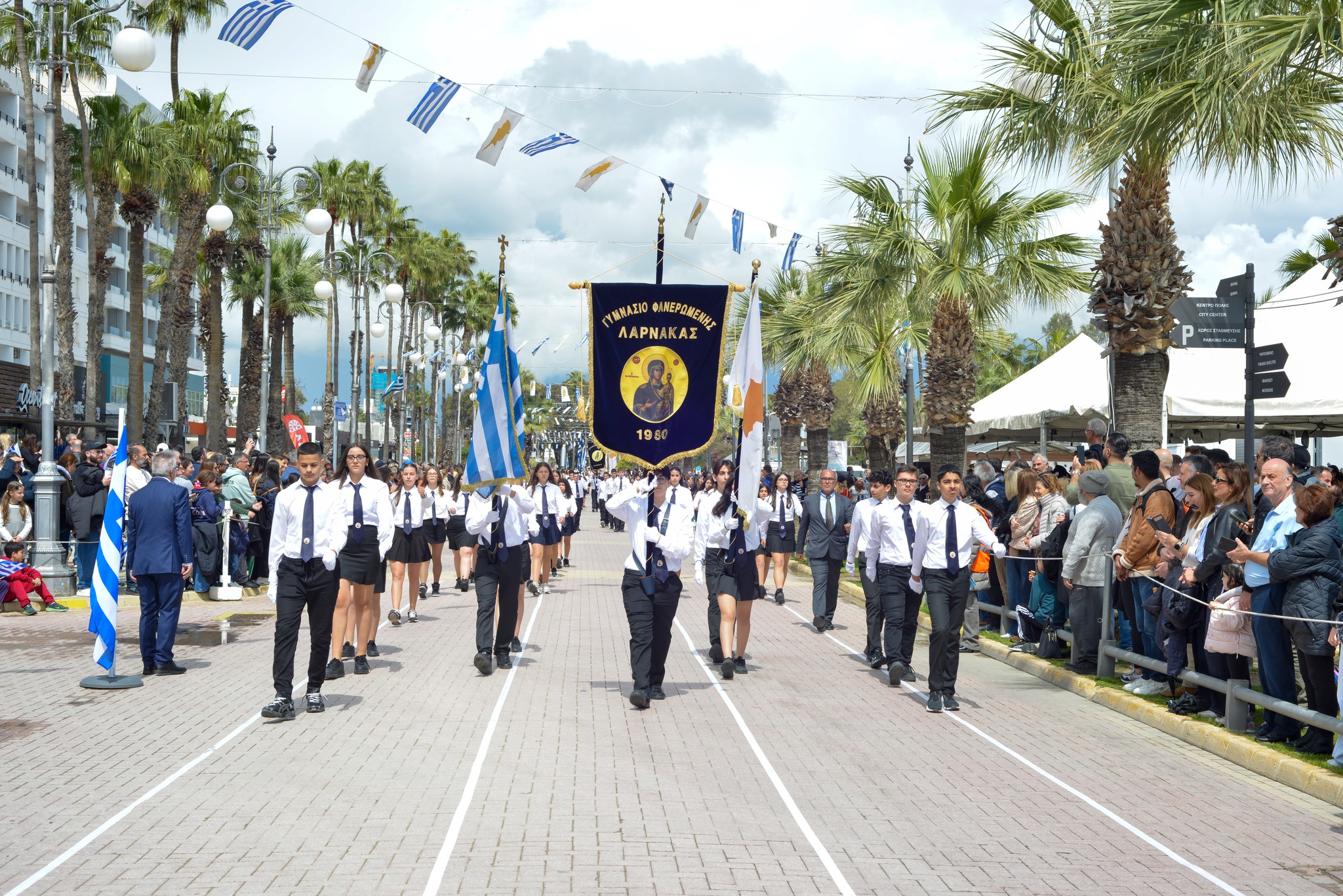Στη συνέχεια πλήθος κόσμου παρέστη στην μαθητική παρέλαση που πραγματοποιήθηκε στη Λεωφόρο Αθηνών στο παραλιακό μέτωπο των Φοινικούδων. Σε αυτήν συμμετείχαν, η Φιλαρμονική και Παιδική Φιλαρμονική του Δήμου Λάρνακας, σώματα της Εθνικής Φρουράς, σχολεία, οργανωμένα σύνολα, σωματεία και άγημα της Πολιτικής Άμυνας.