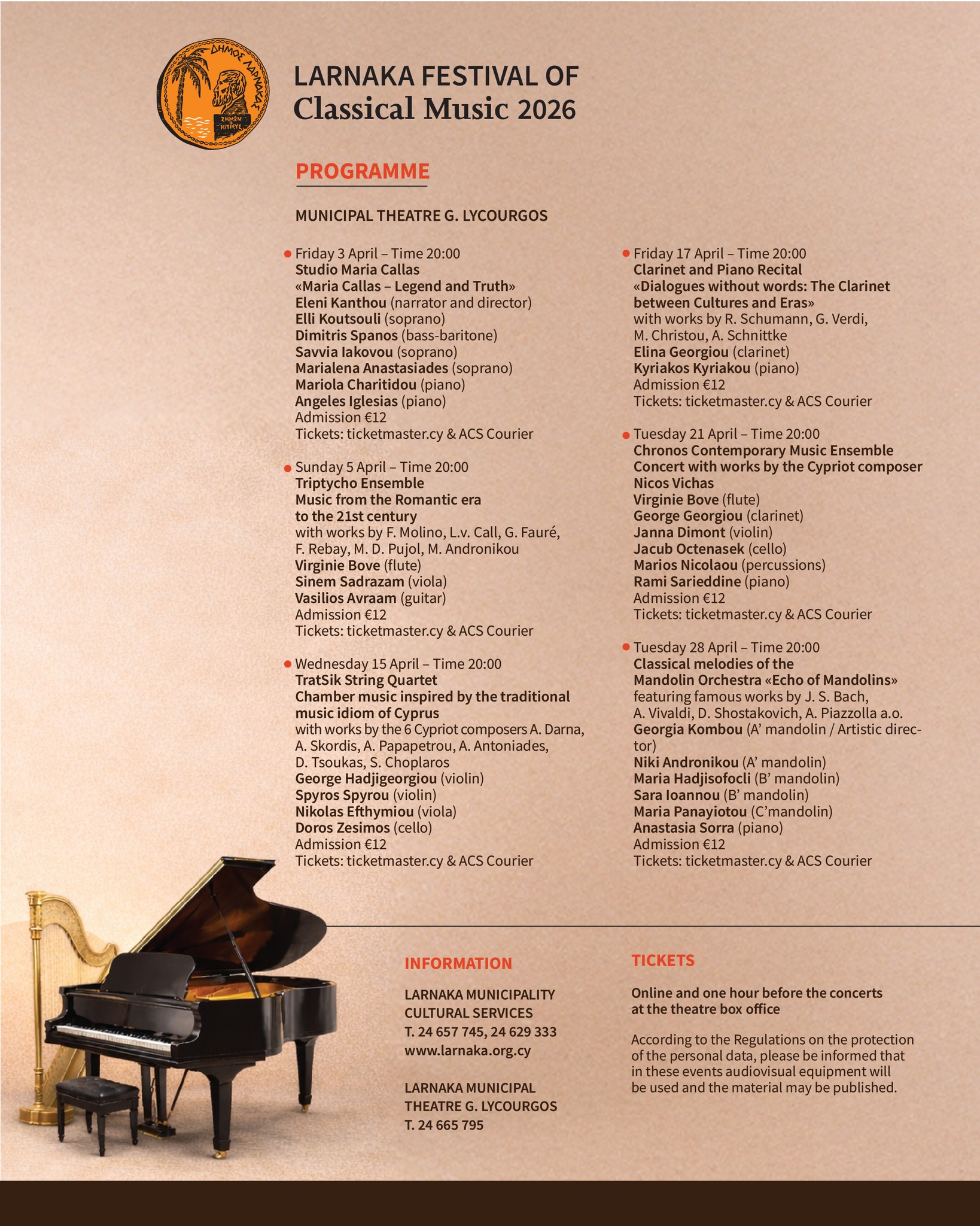 Ο Δήμος Λάρνακας σας προσκαλεί να ζήσετε μοναδικές μουσικές στιγμές με την επιστροφή του Φεστιβάλ Κλασικής Μουσικής.