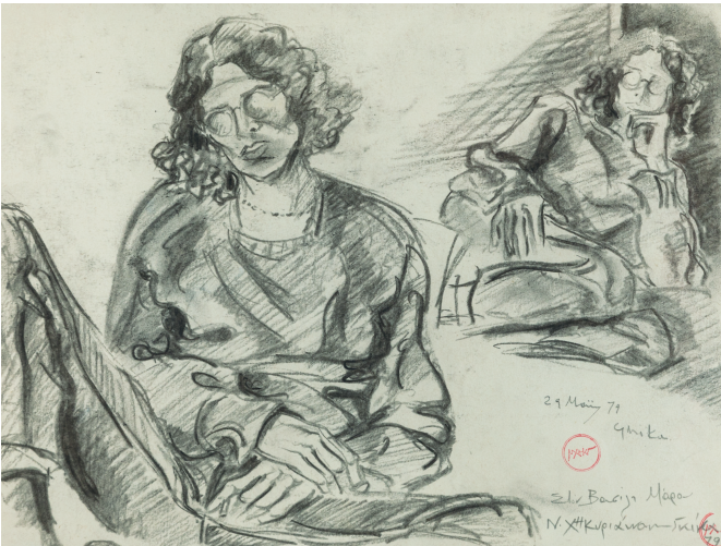 Νίκος Χατζηκυριάκος Γκίκας (1906-1994) Κοπέλα, 1979, κάρβουνο σε χαρτί, 35×26 εκ.